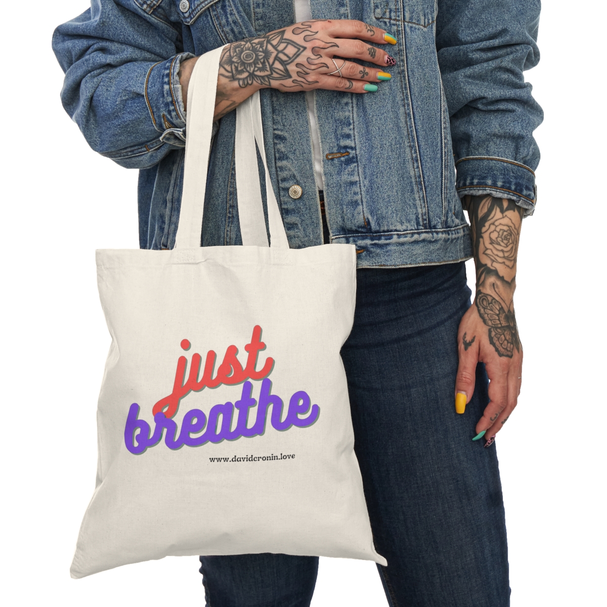 “just breathe” A 100% cotton tote bag is the champion of durability, sustainability, in beautiful quality that’ll last for years to come.