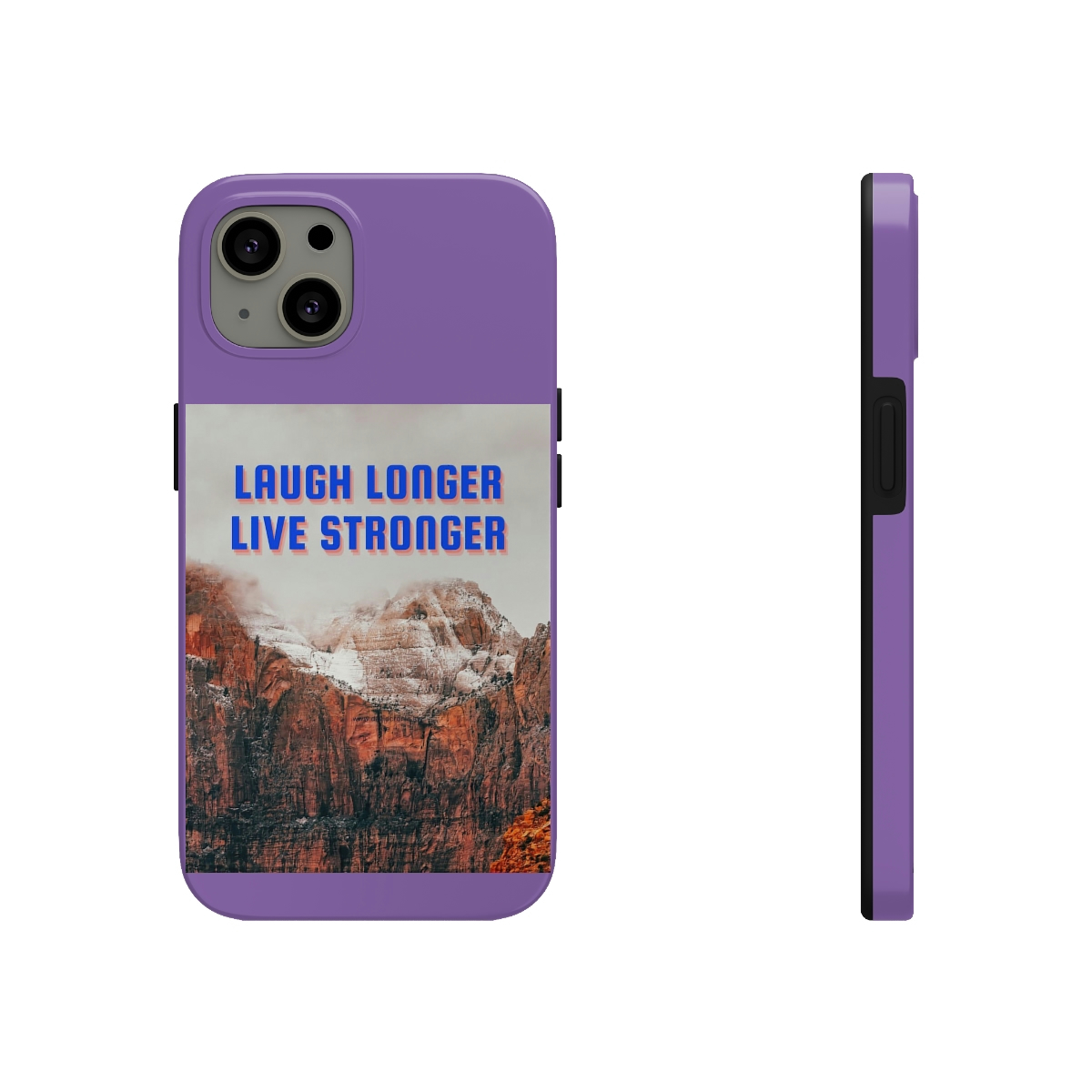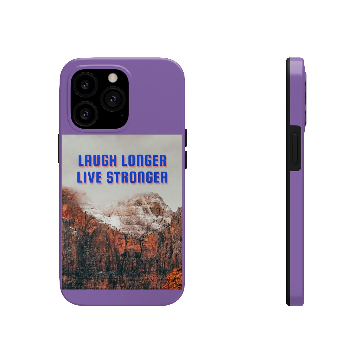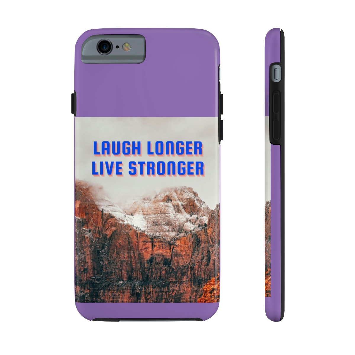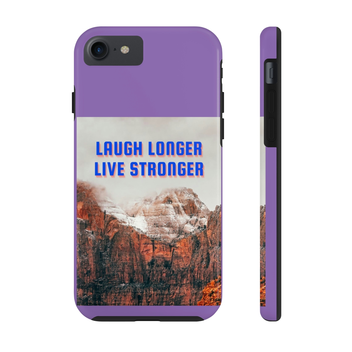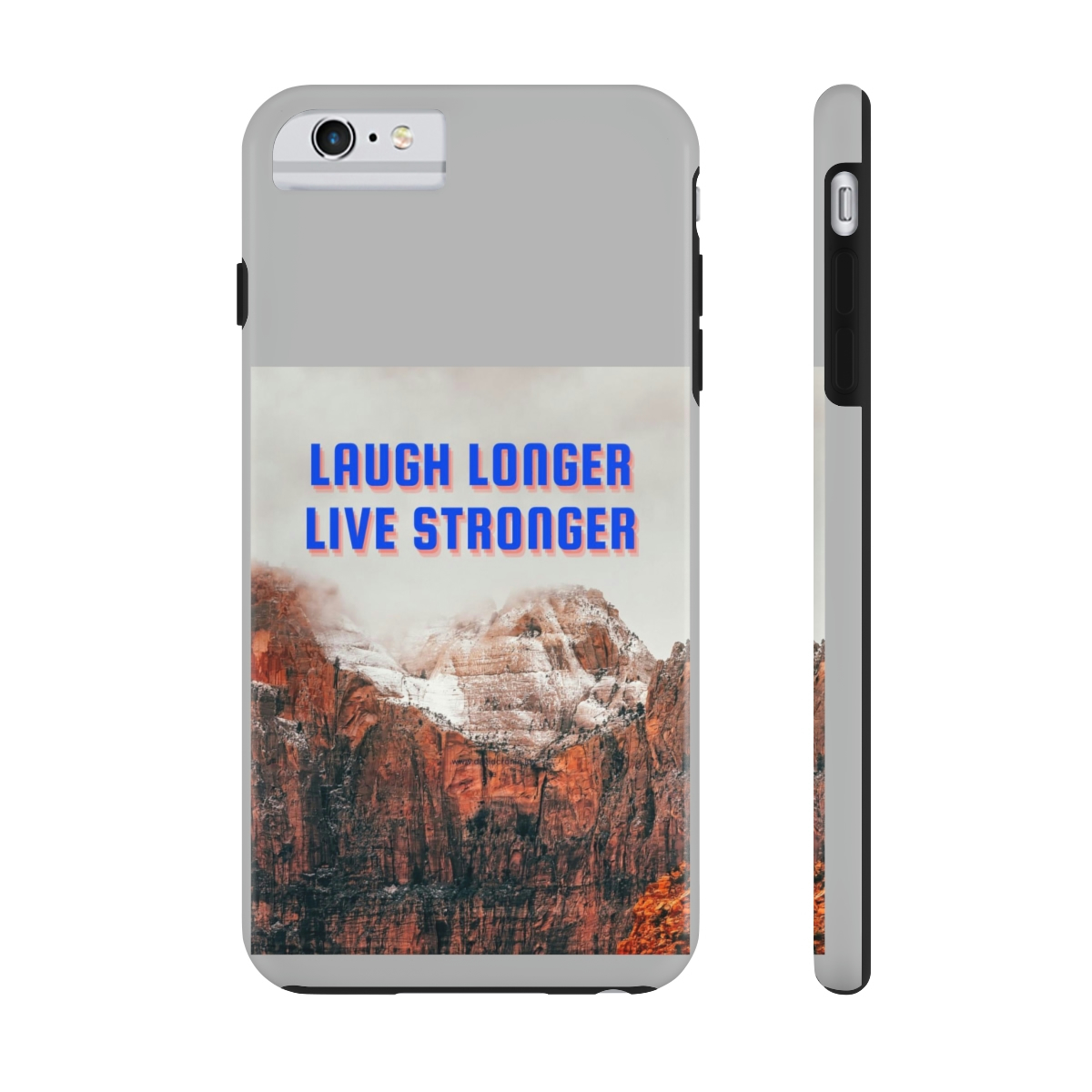 “LAUGH LONGER LIVE STRONGER” Protect your phone in custom style with this tough phone case. This lightweight phone case is impact resistant. Compatible with iPhone 6, 6s, 12, 13, 14 & more – check our available sizes.