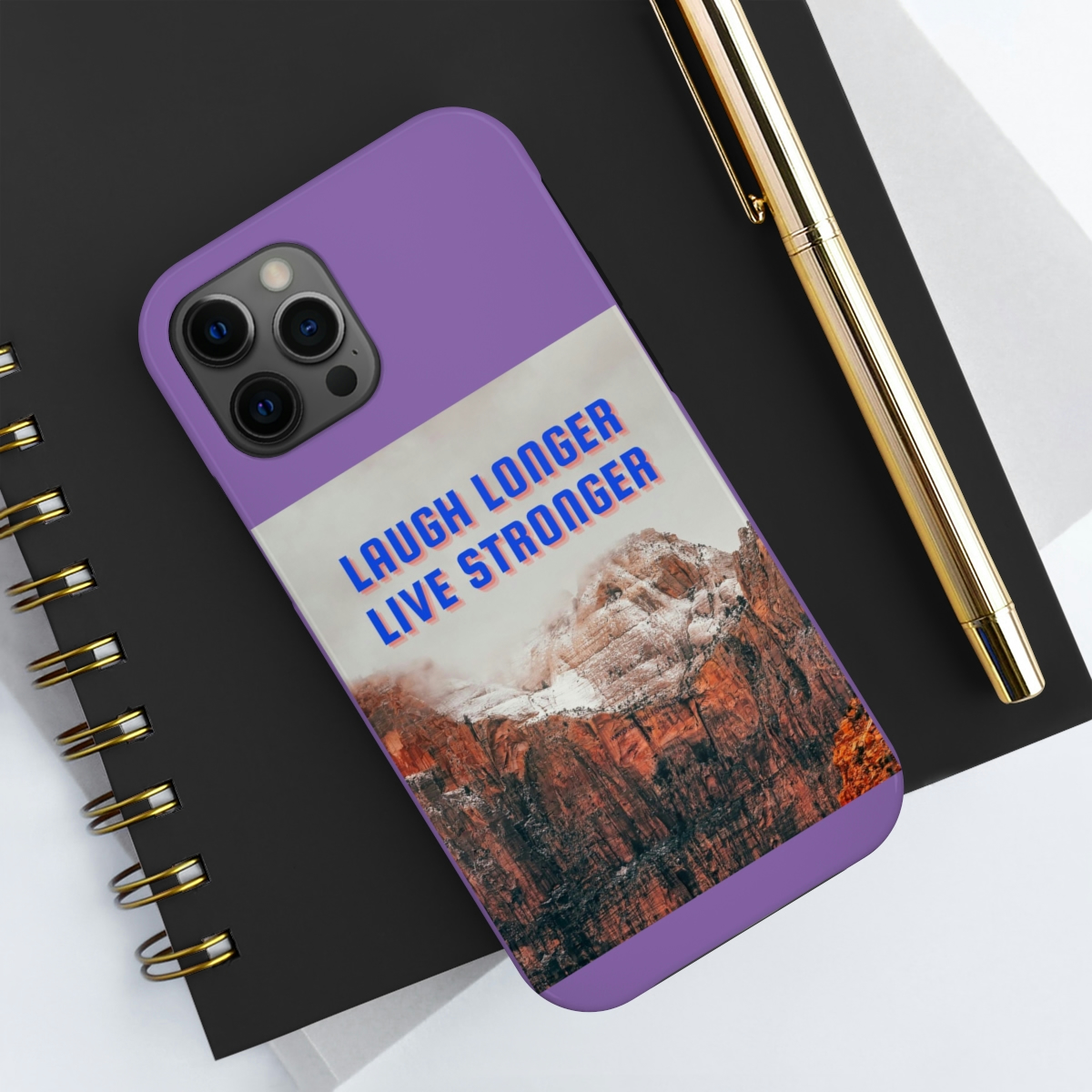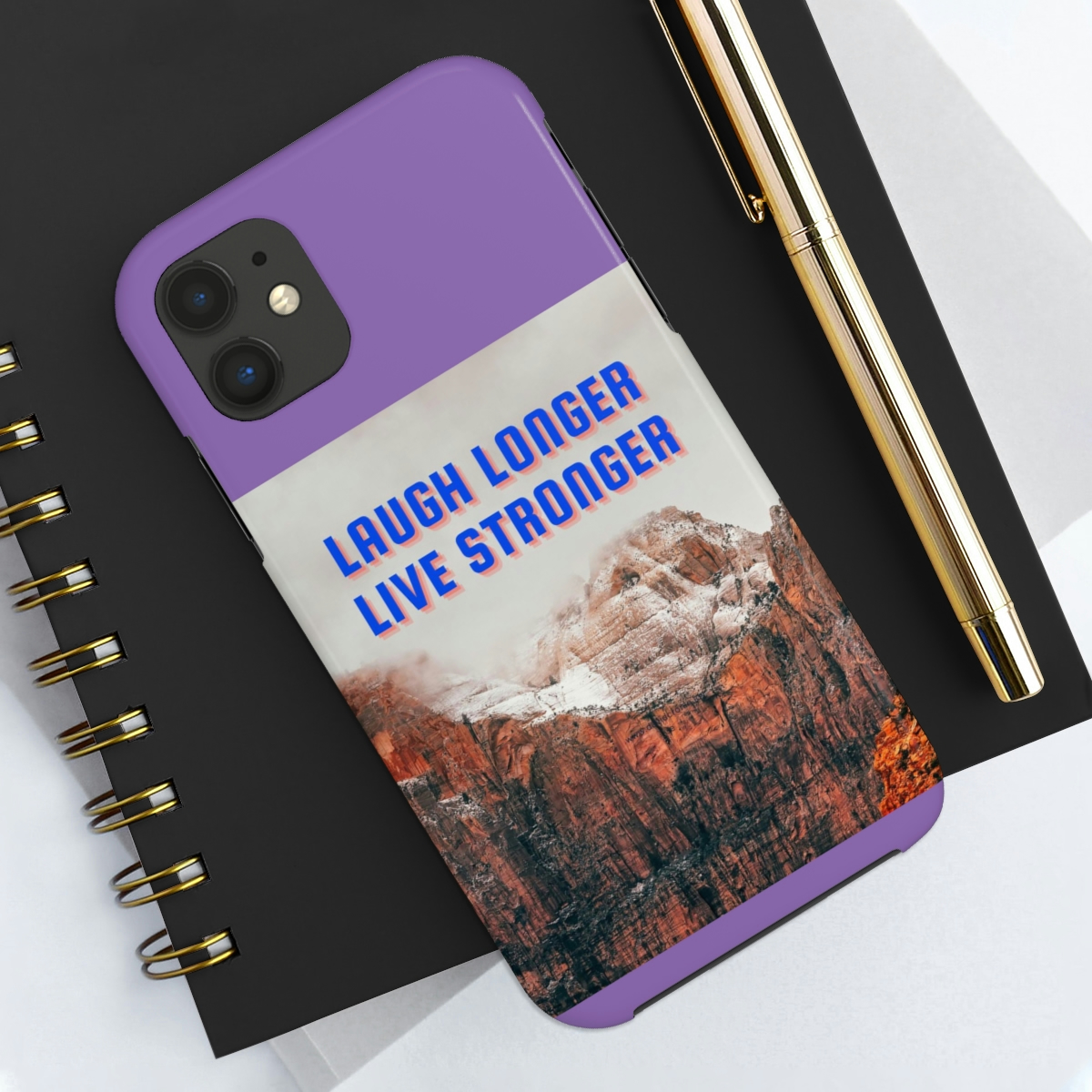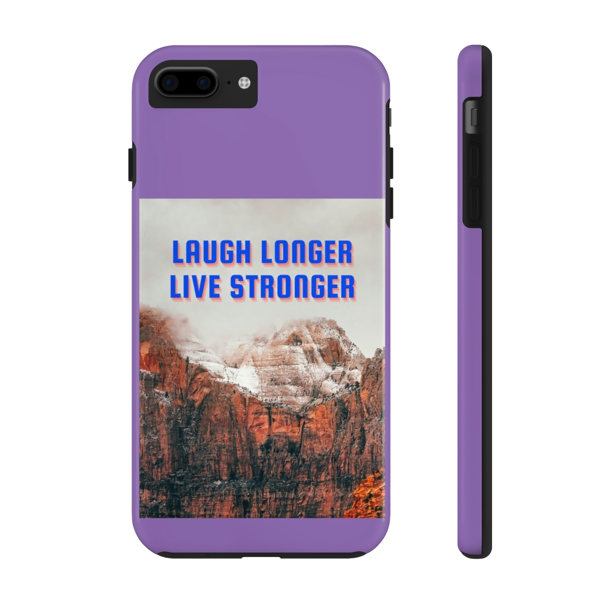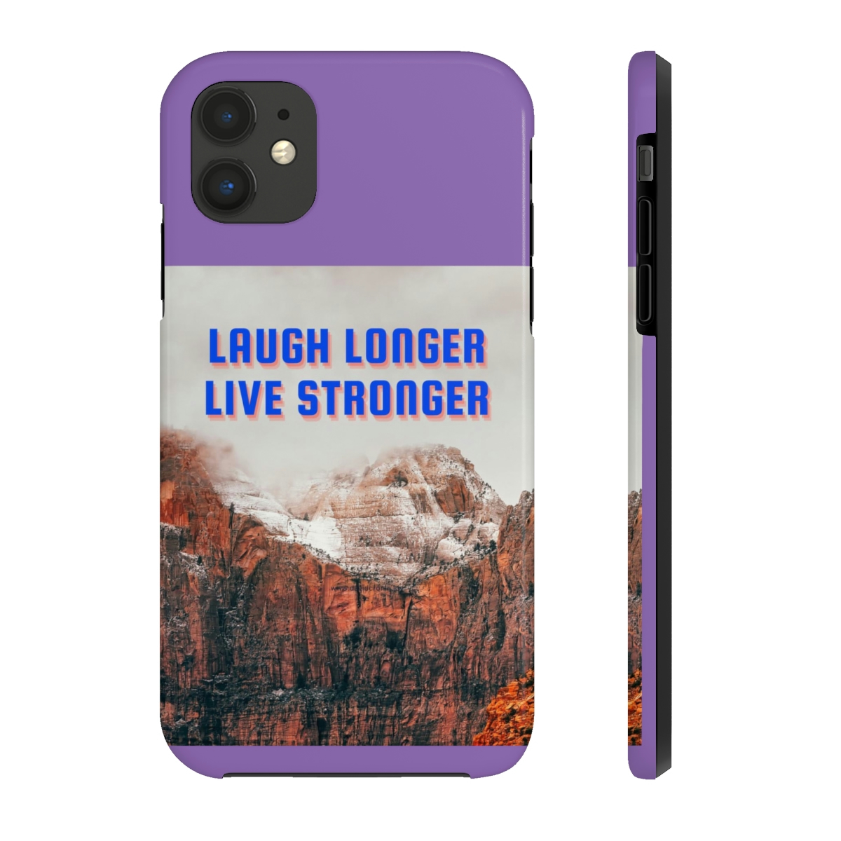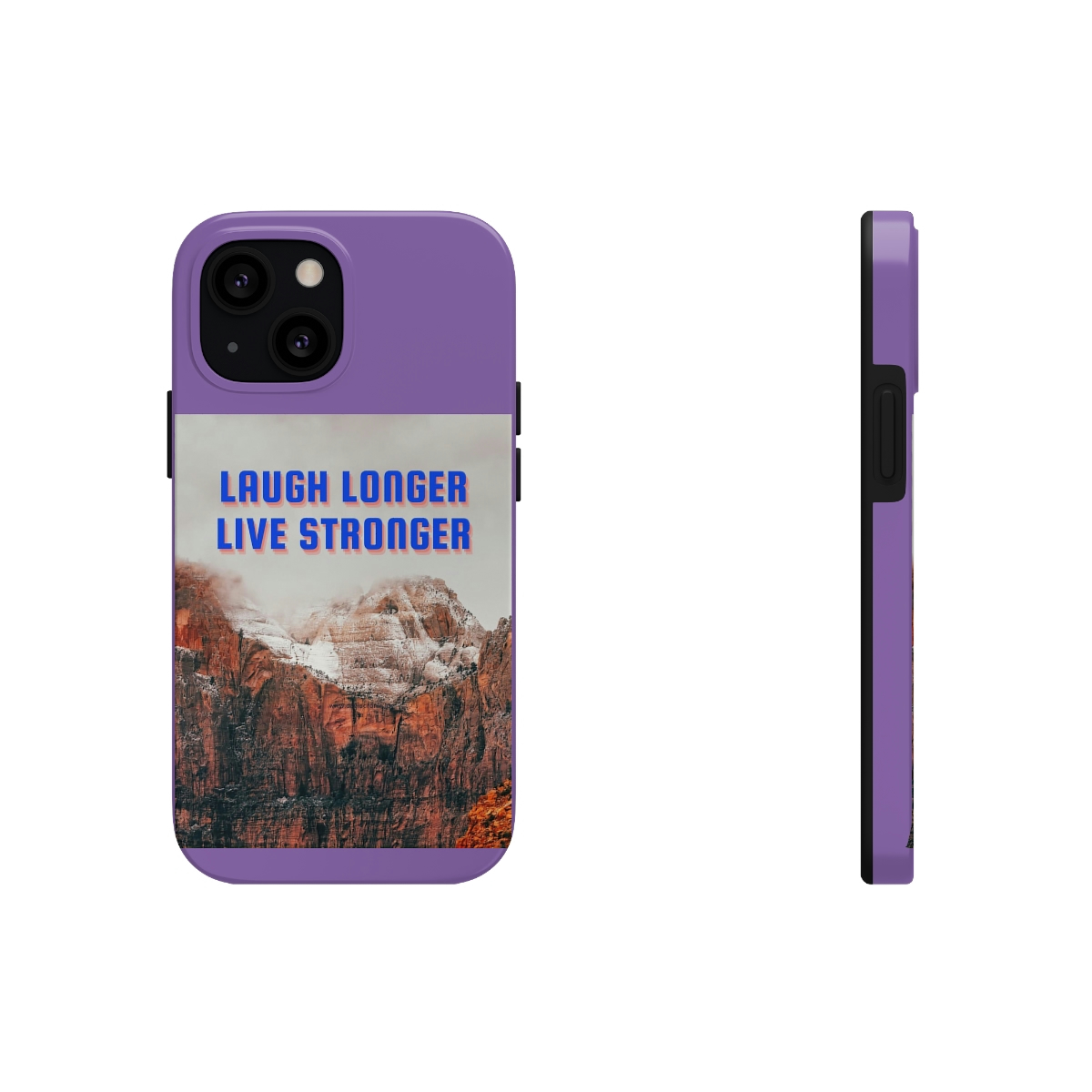 “LAUGH LONGER LIVE STRONGER” Protect your phone in custom style with this tough phone case. This lightweight phone case is impact resistant. Compatible with iPhone 6, 6s, 12, 13, 14 & more – check our available sizes.