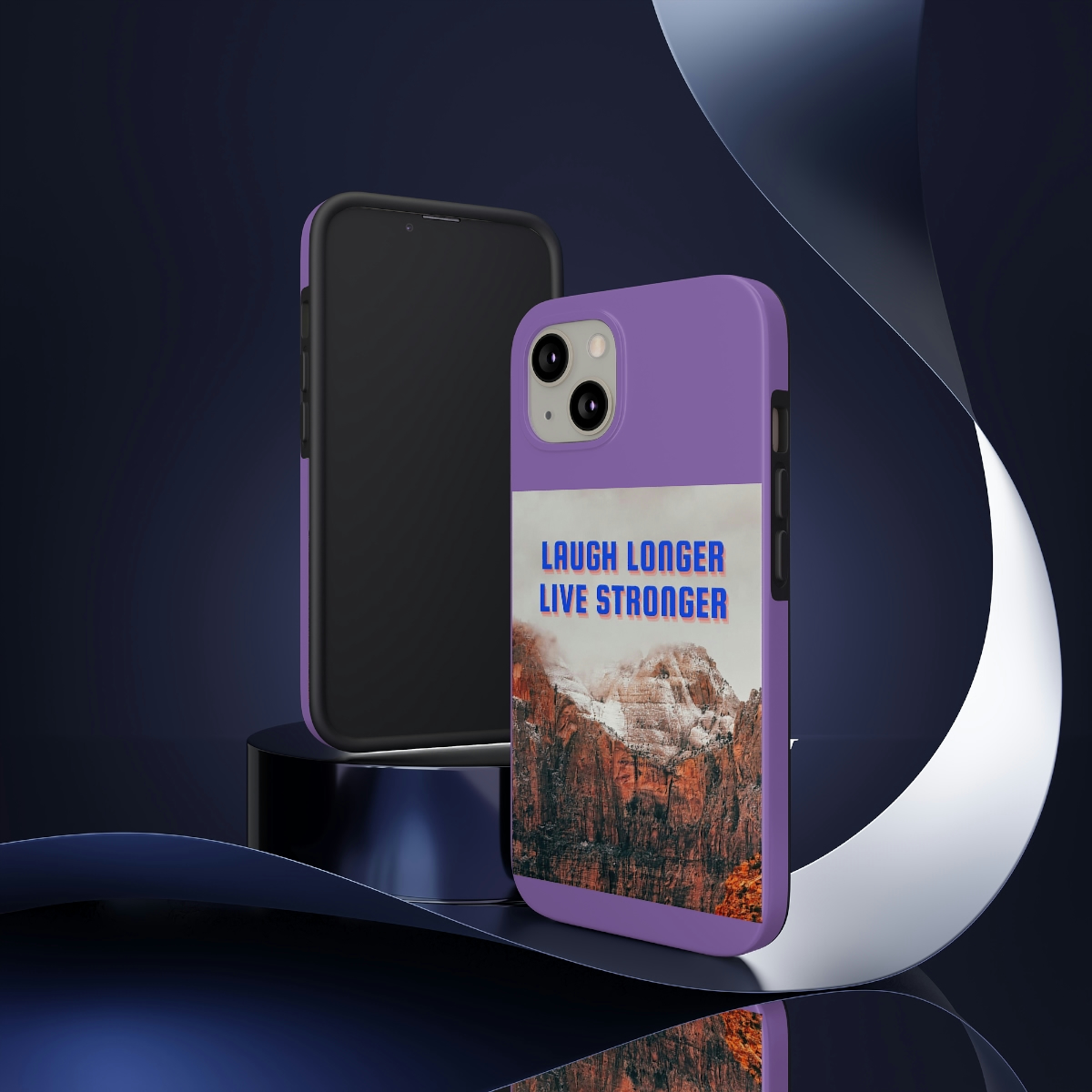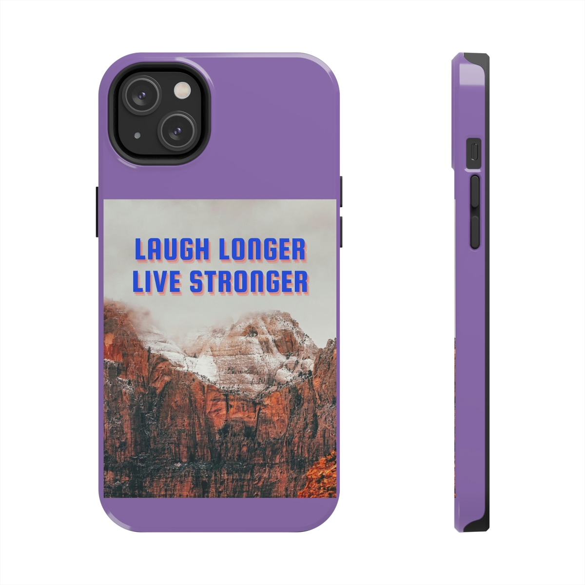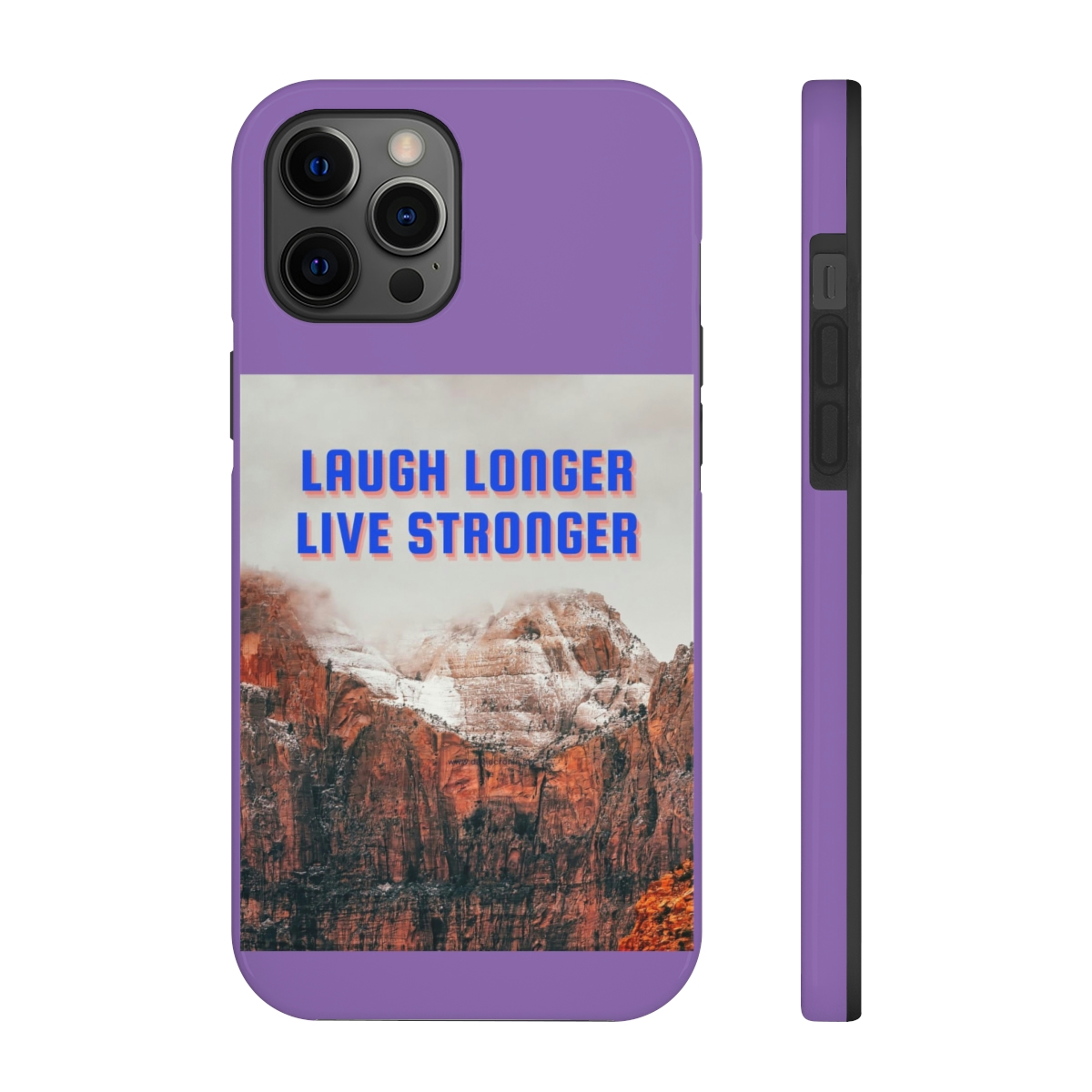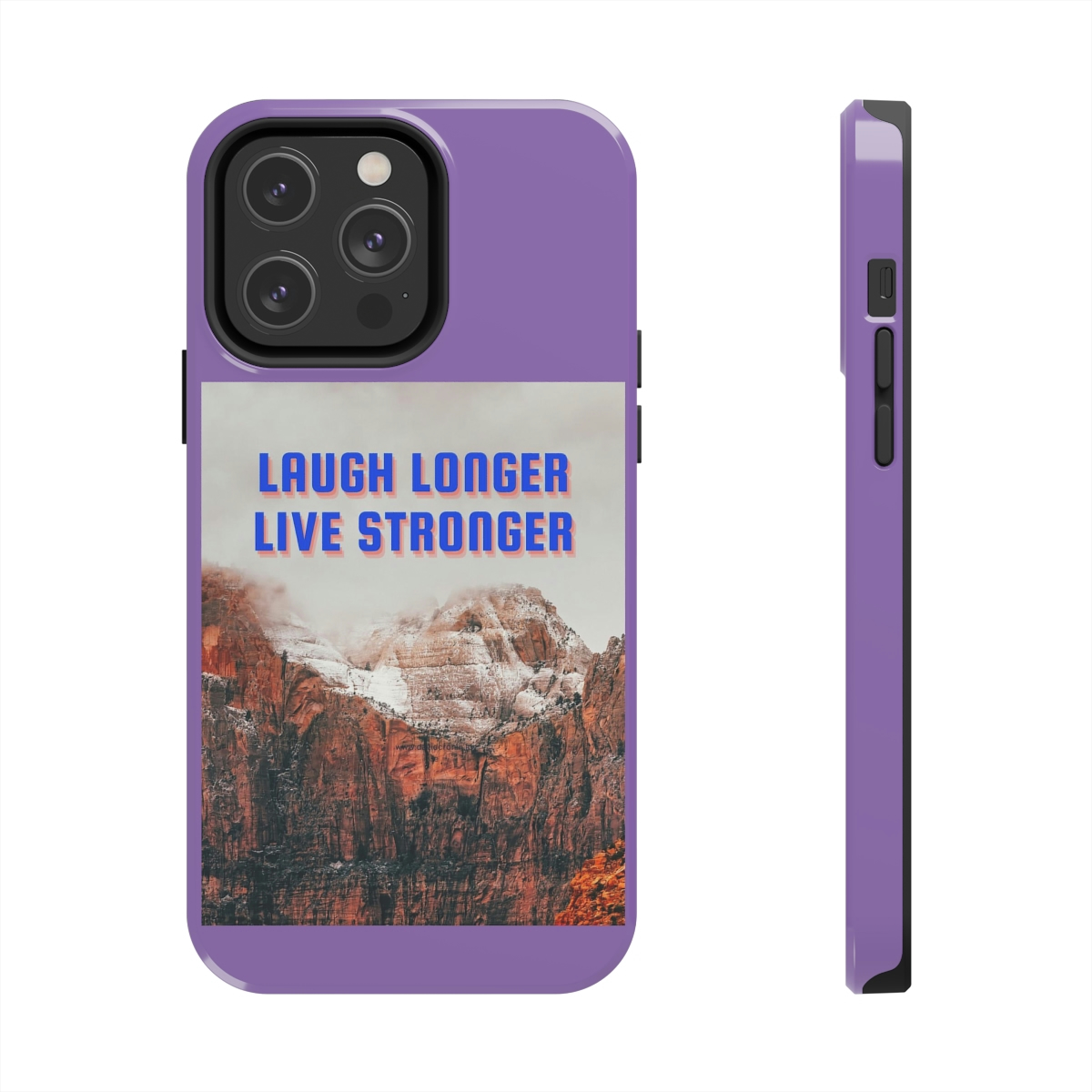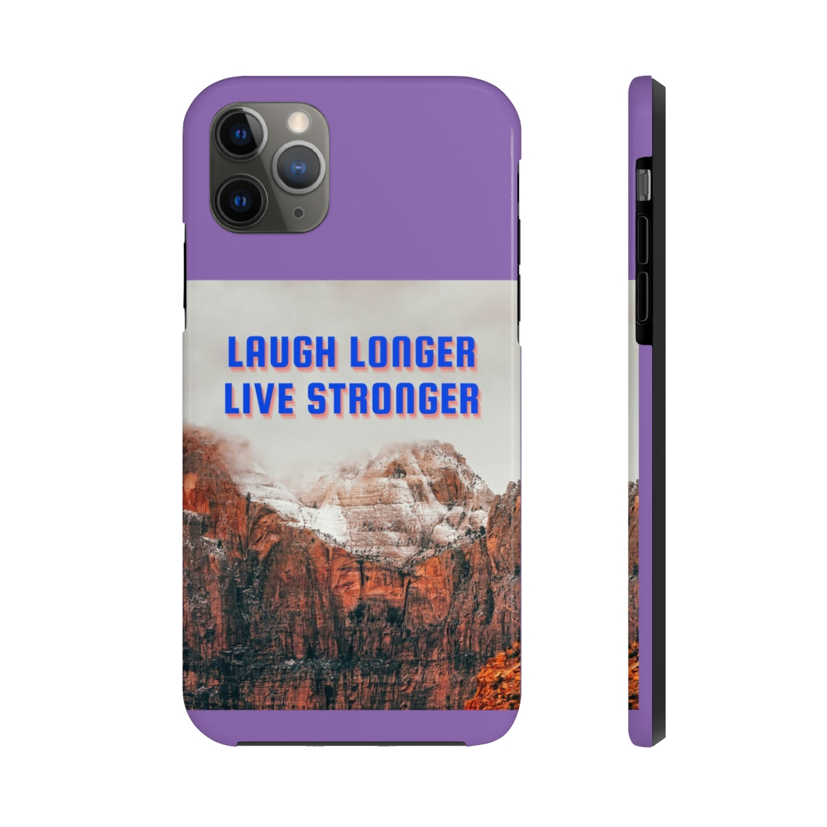 “LAUGH LONGER LIVE STRONGER” Protect your phone in custom style with this tough phone case. This lightweight phone case is impact resistant. Compatible with iPhone 6, 6s, 12, 13, 14 & more – check our available sizes.