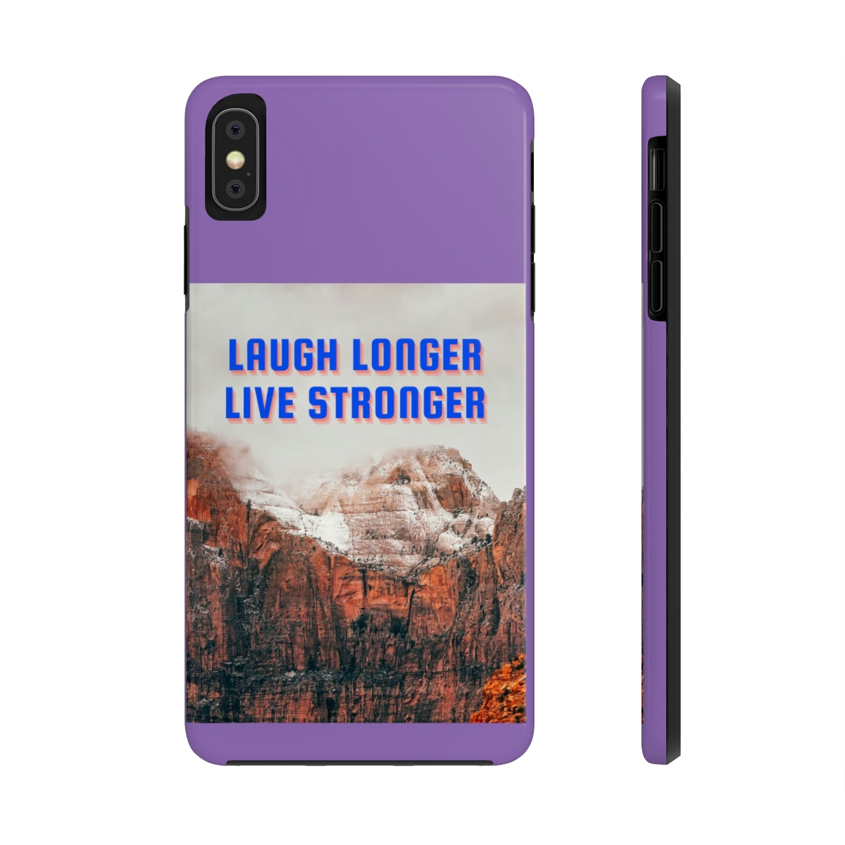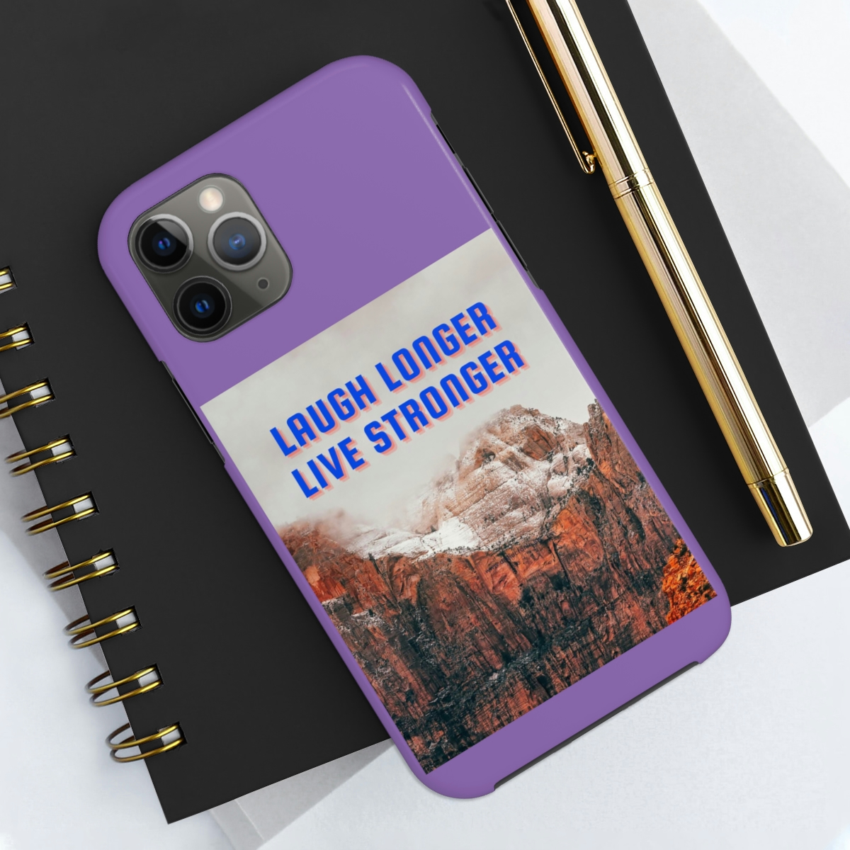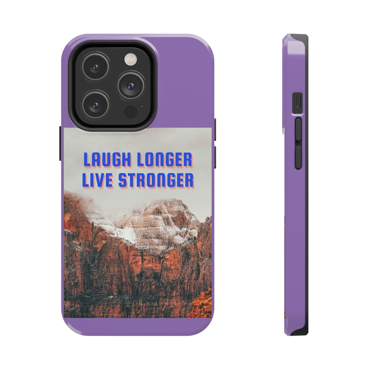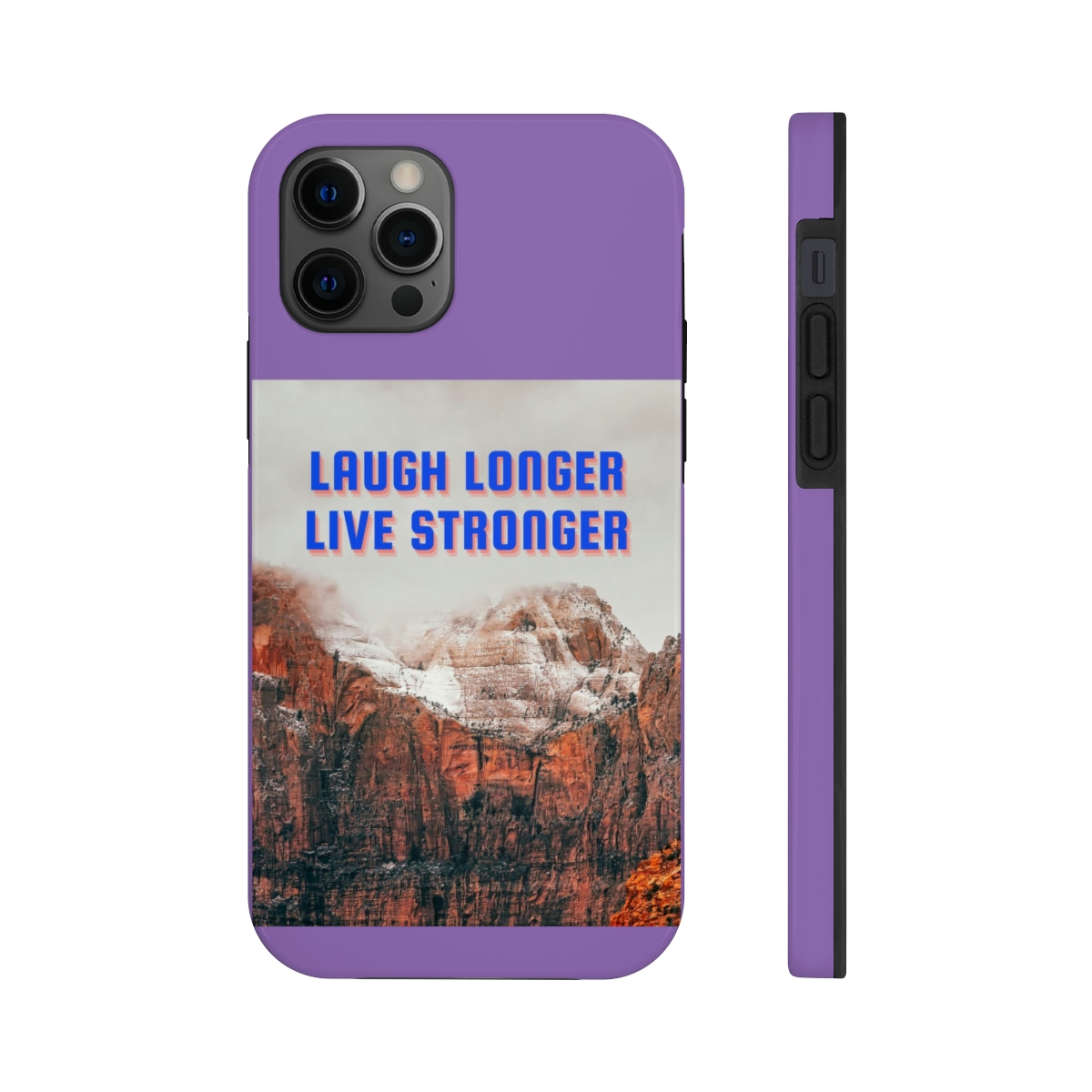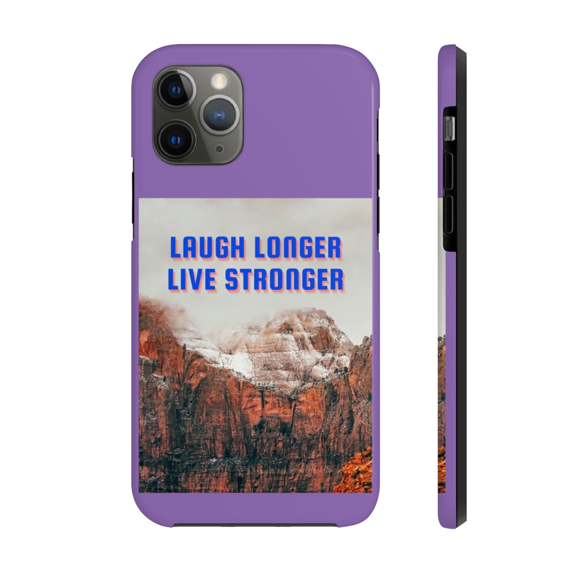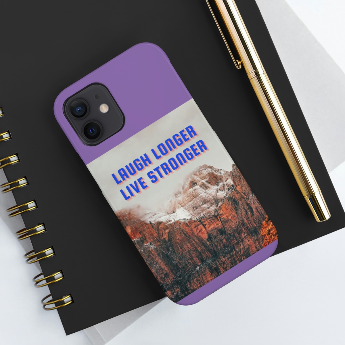 “LAUGH LONGER LIVE STRONGER” Protect your phone in custom style with this tough phone case. This lightweight phone case is impact resistant. Compatible with iPhone 6, 6s, 12, 13, 14 & more – check our available sizes.