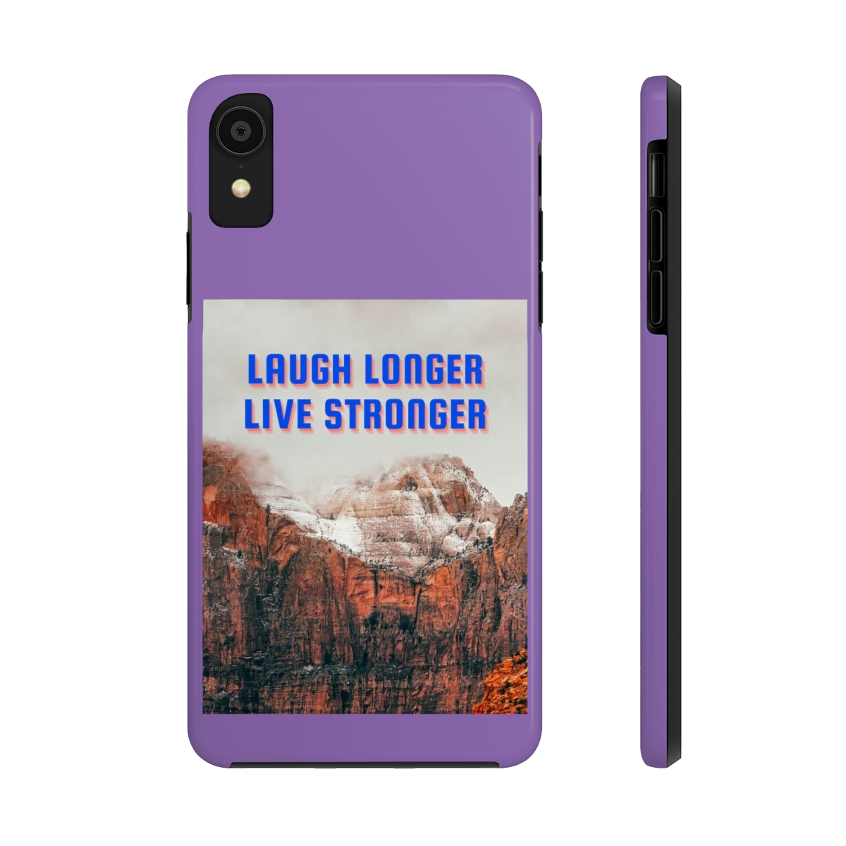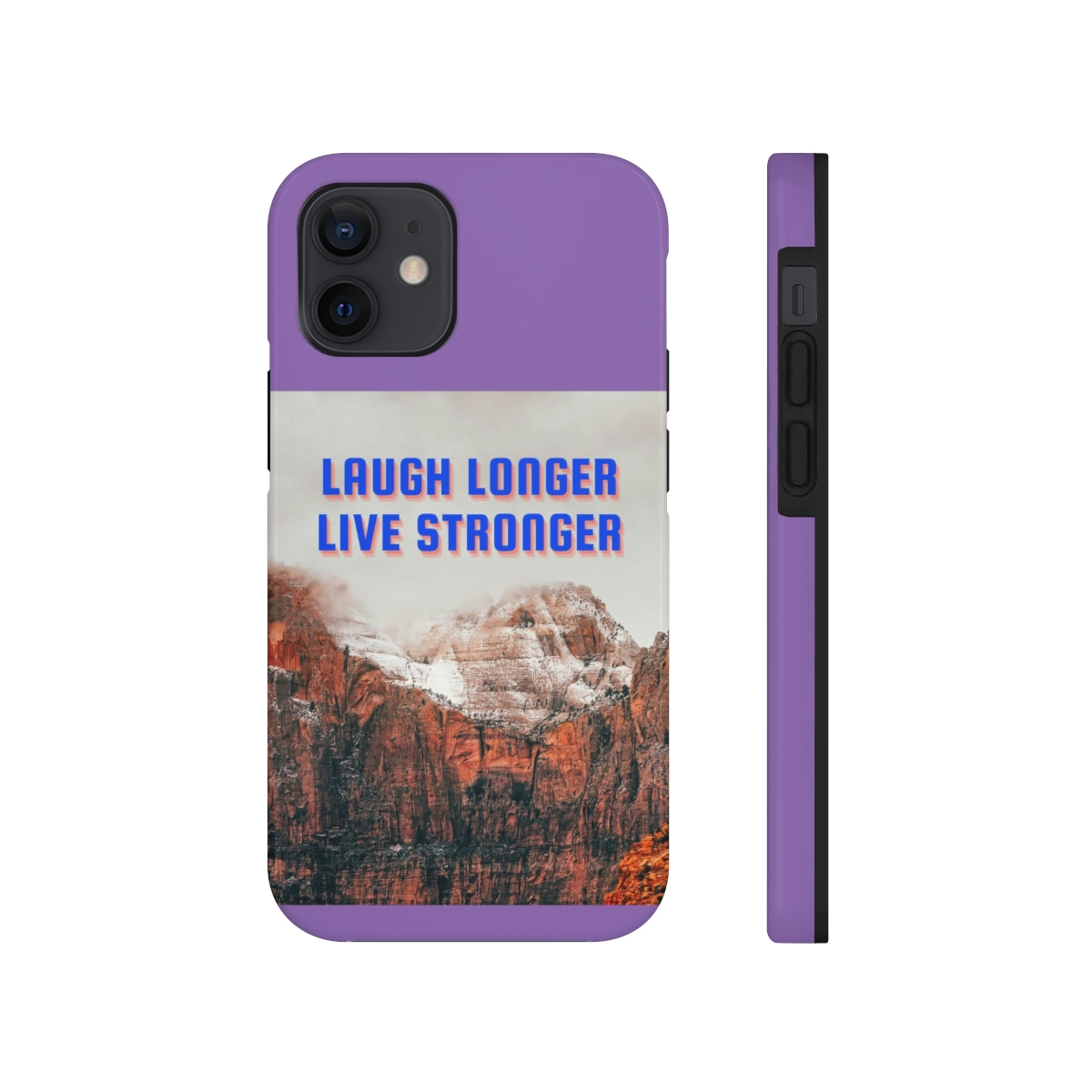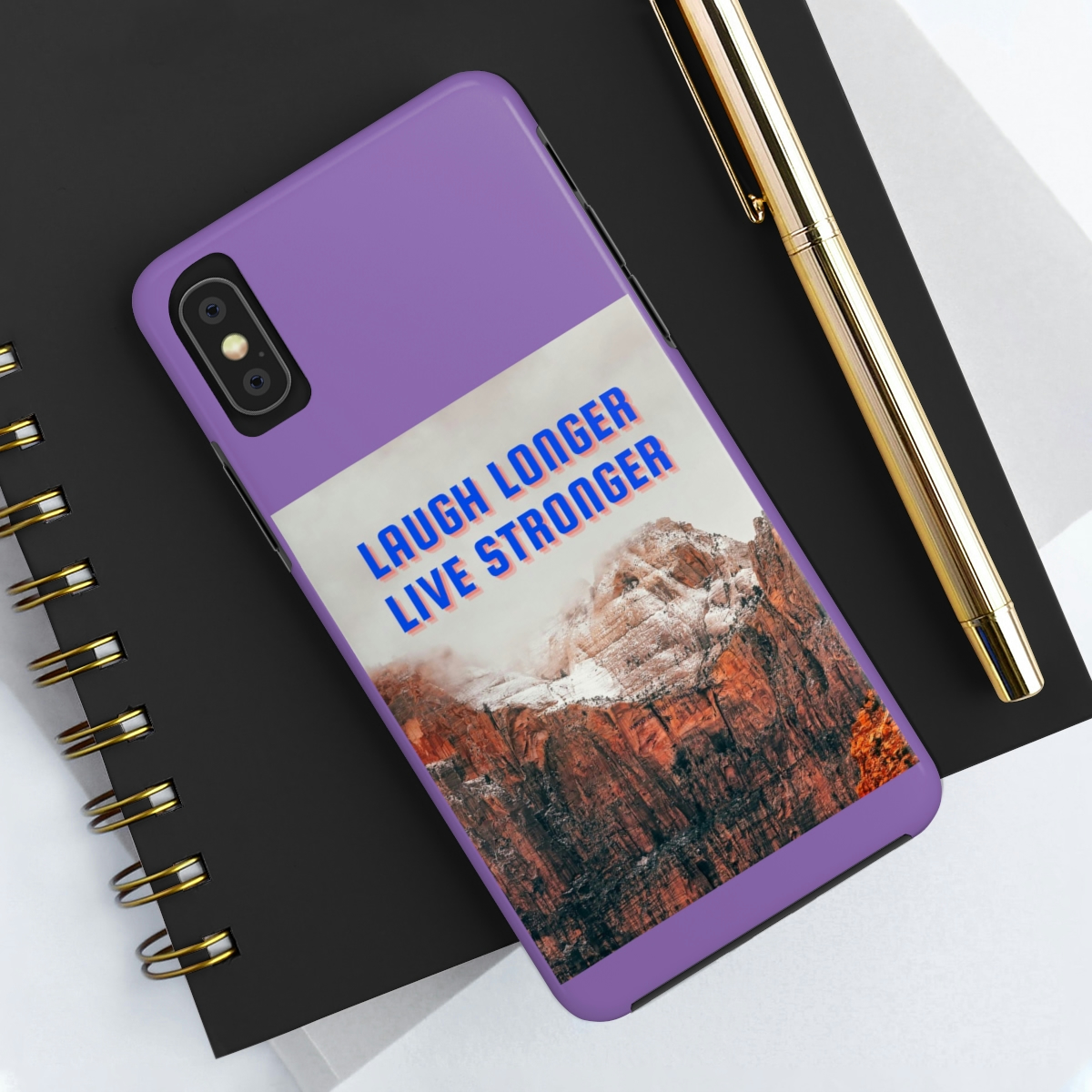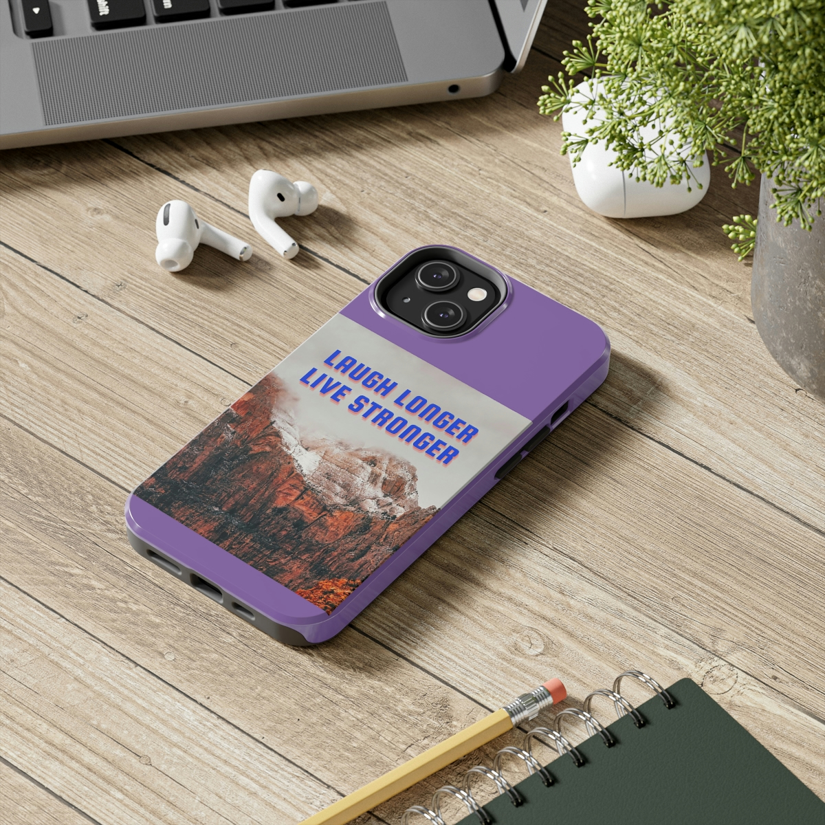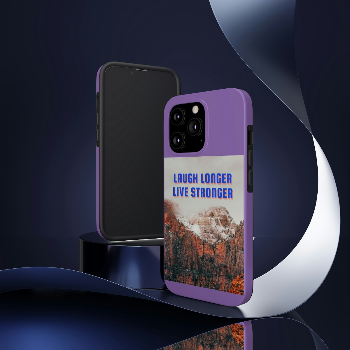“LAUGH LONGER LIVE STRONGER” Protect your phone in custom style with this tough phone case. This lightweight phone case is impact resistant. Compatible with iPhone 6, 6s, 12, 13, 14 & more – check our available sizes.
