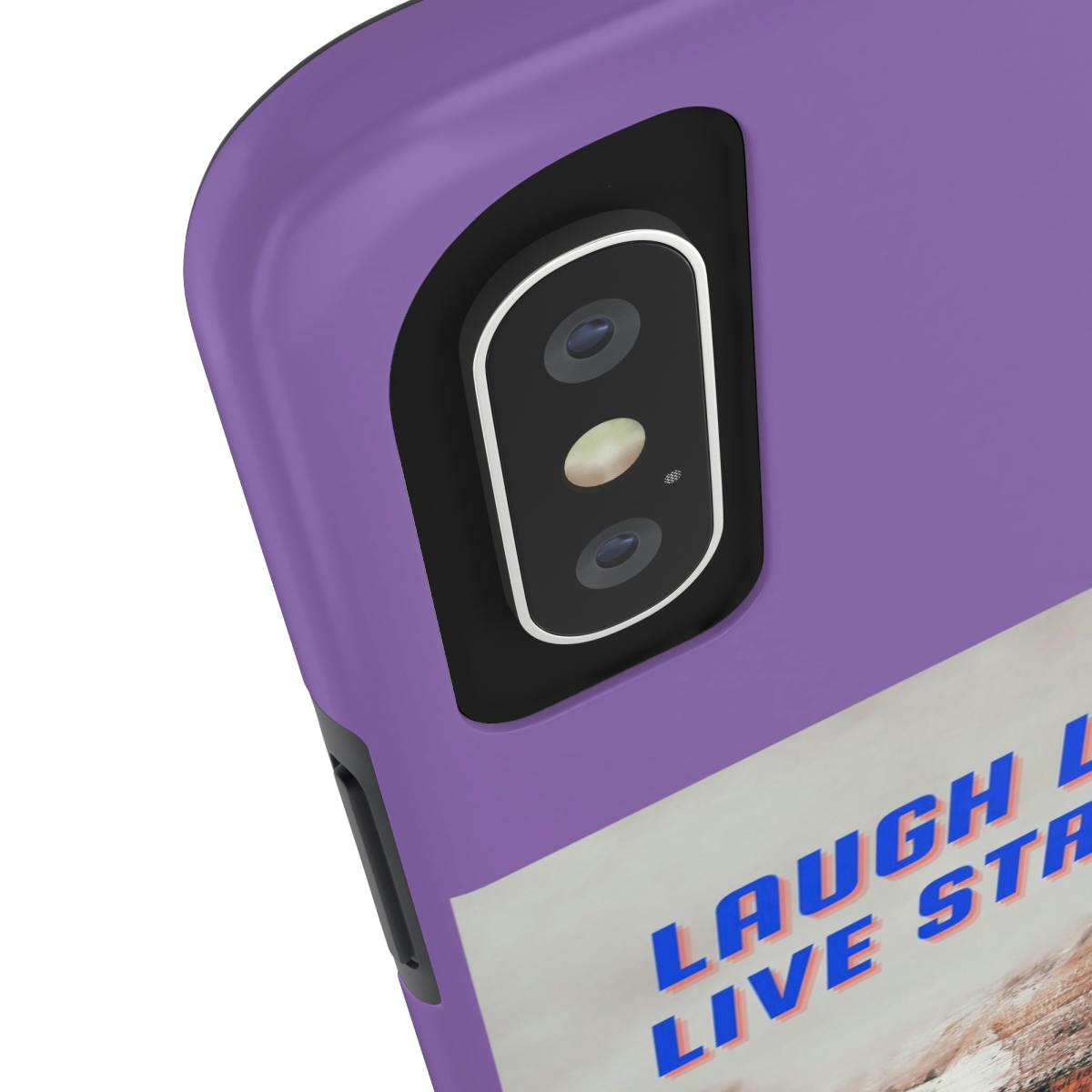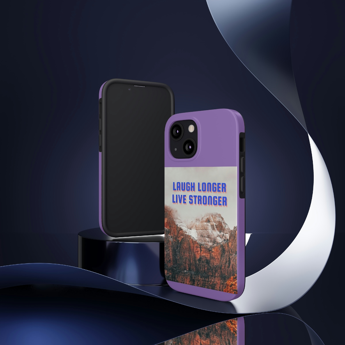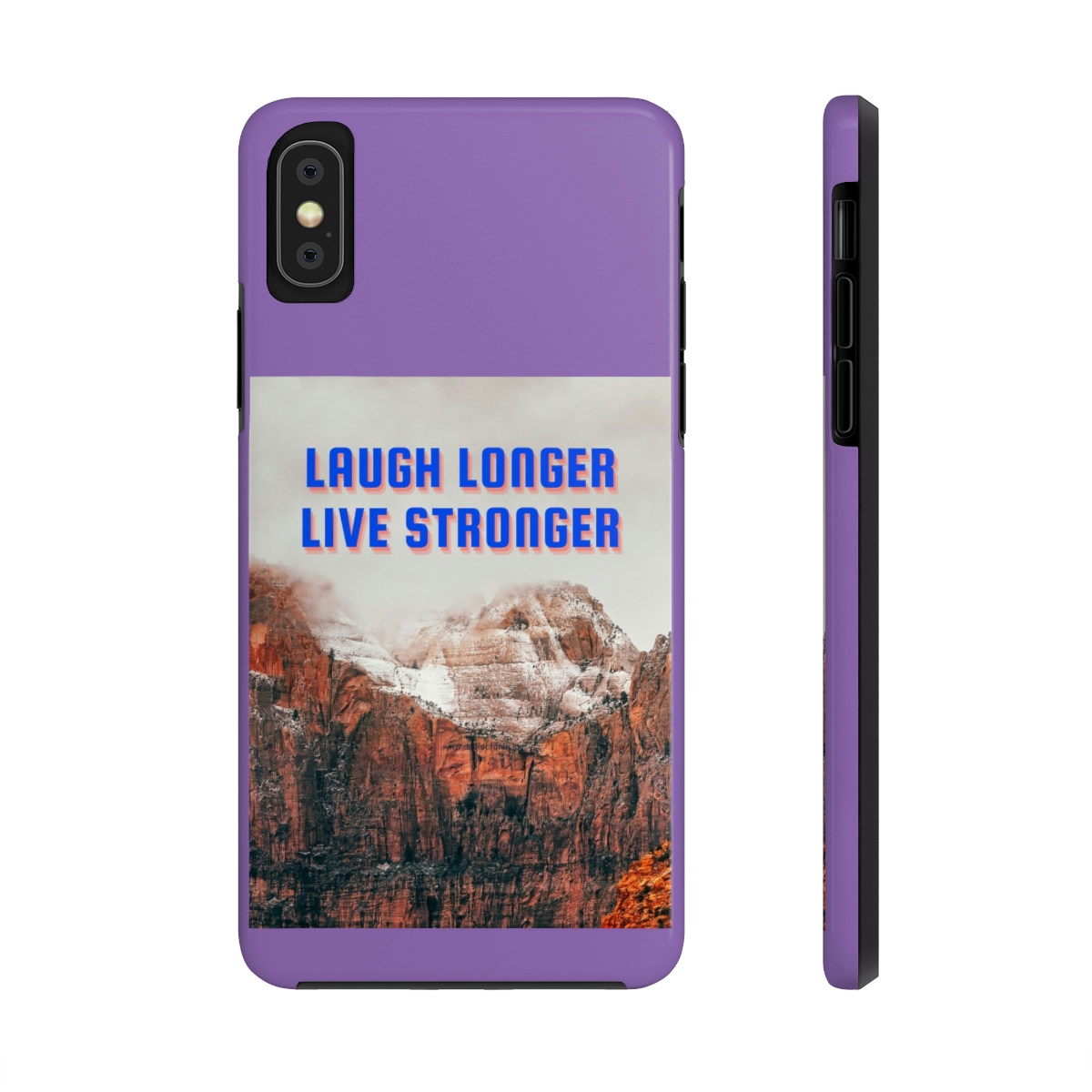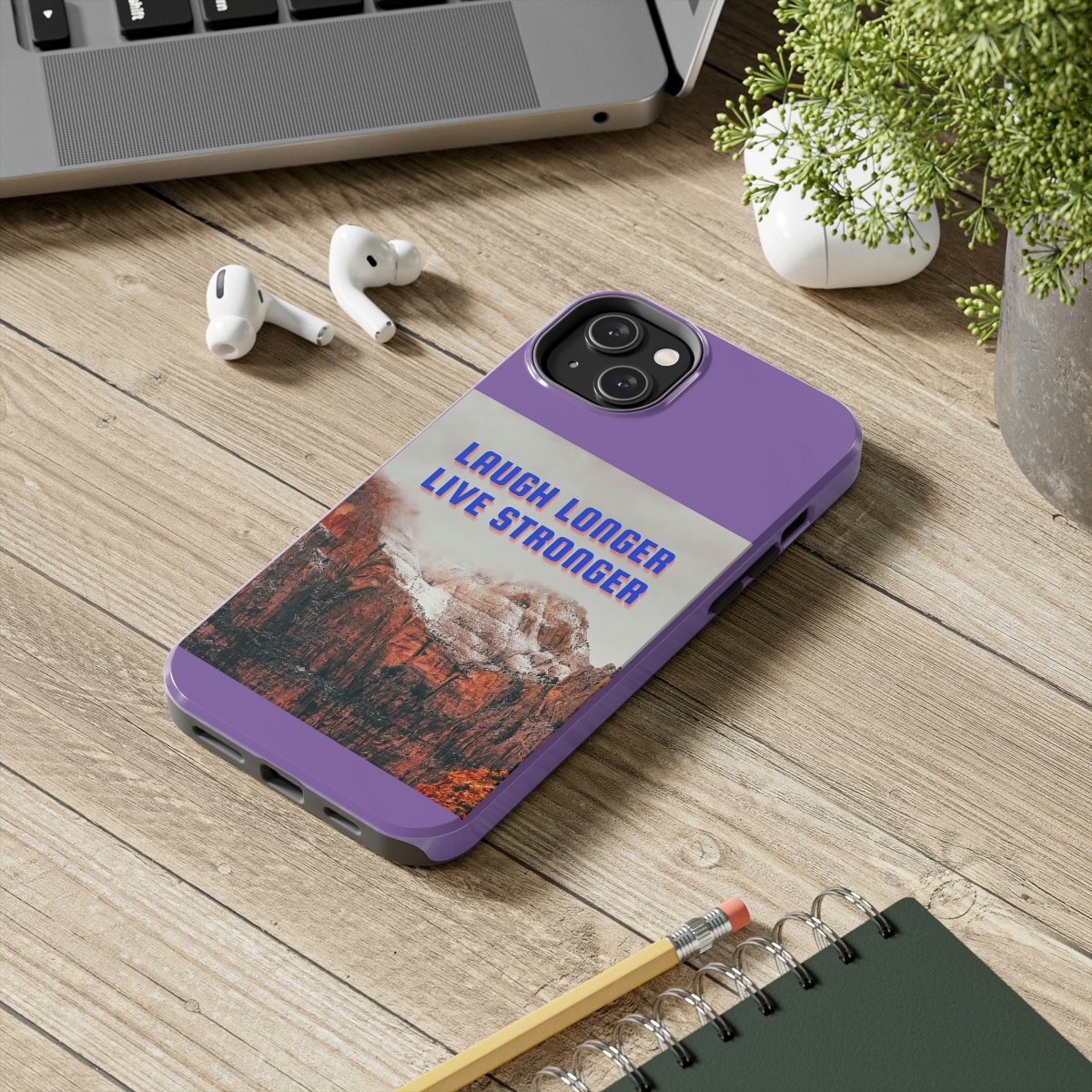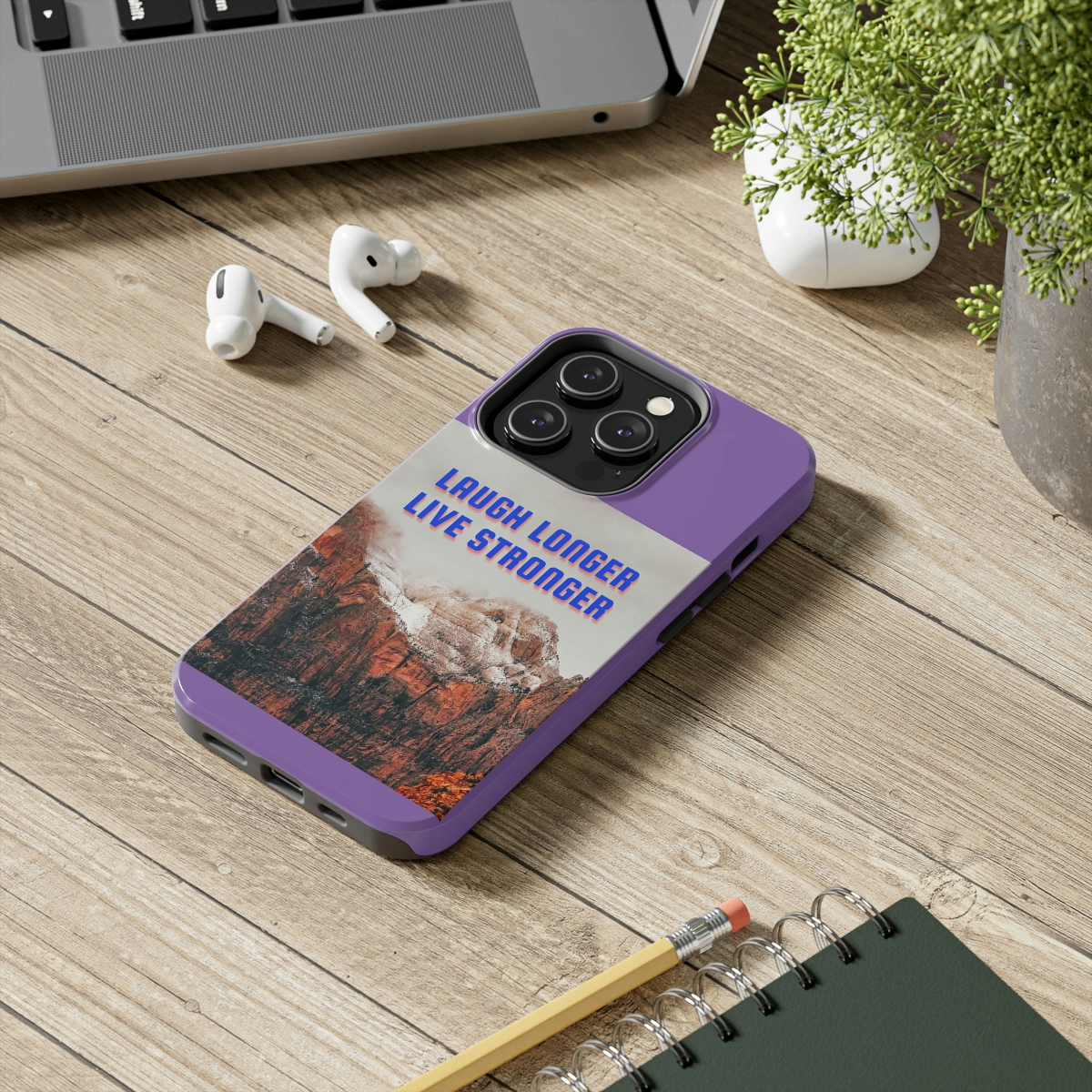 “LAUGH LONGER LIVE STRONGER” Protect your phone in custom style with this tough phone case. This lightweight phone case is impact resistant. Compatible with iPhone 6, 6s, 12, 13, 14 & more – check our available sizes.