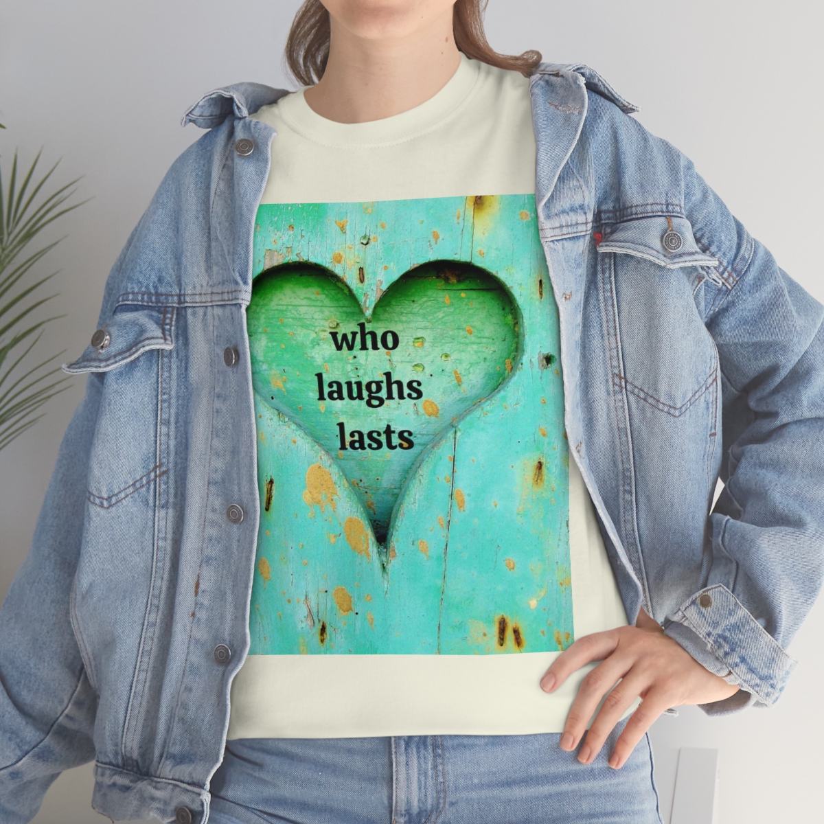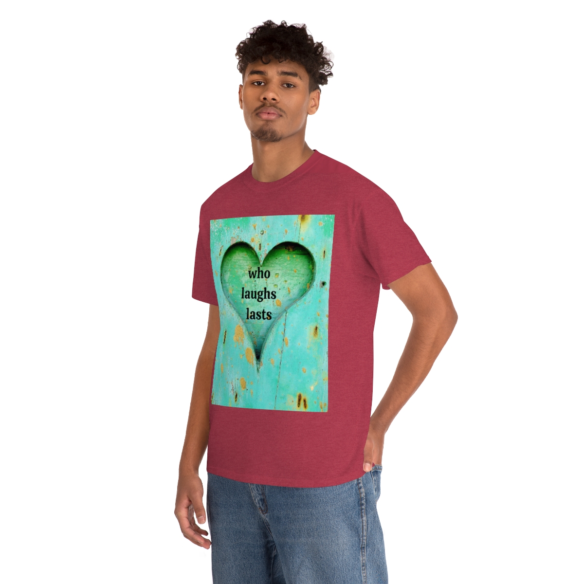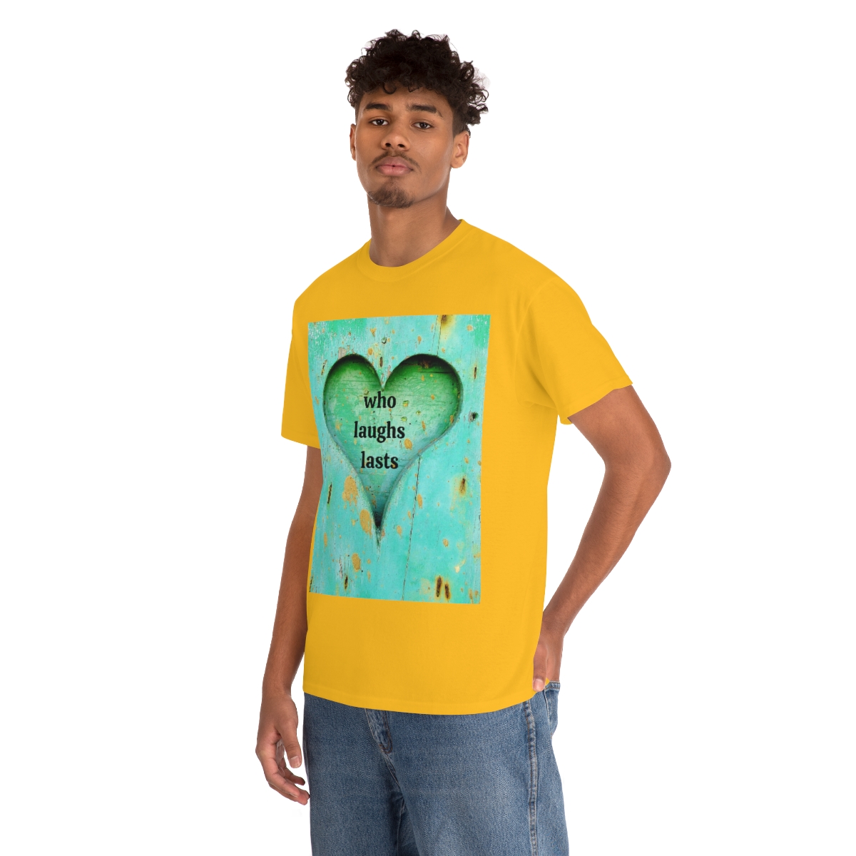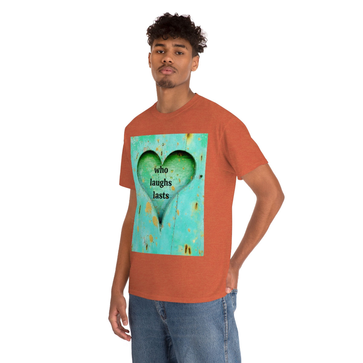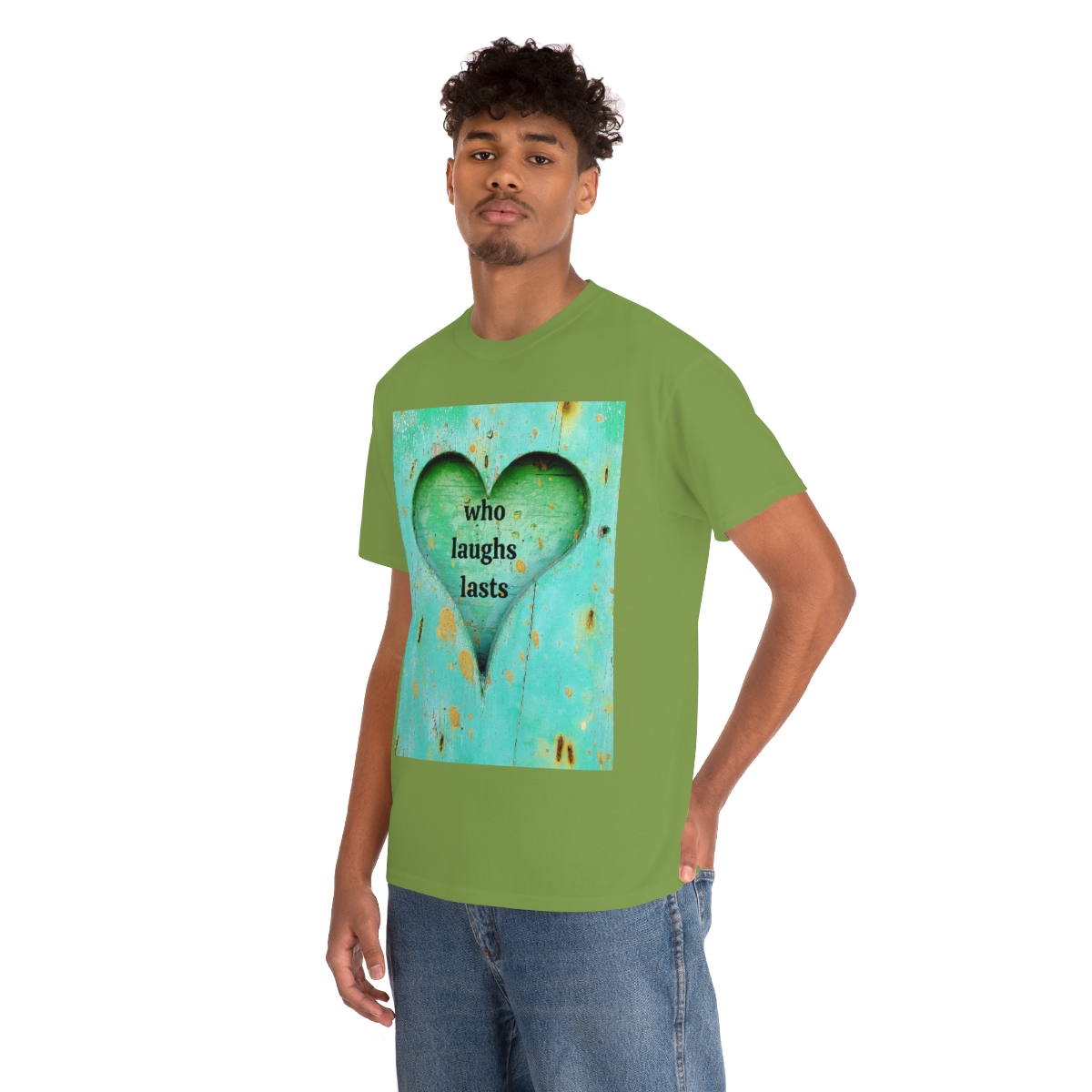 “who laughs lasts” unisex heavy cotton tee is the basic staple of any wardrobe. It is the foundation upon which casual fashion grows. No side seams mean there are no itchy interruptions under the arms. The shoulders have tape for improved durability.