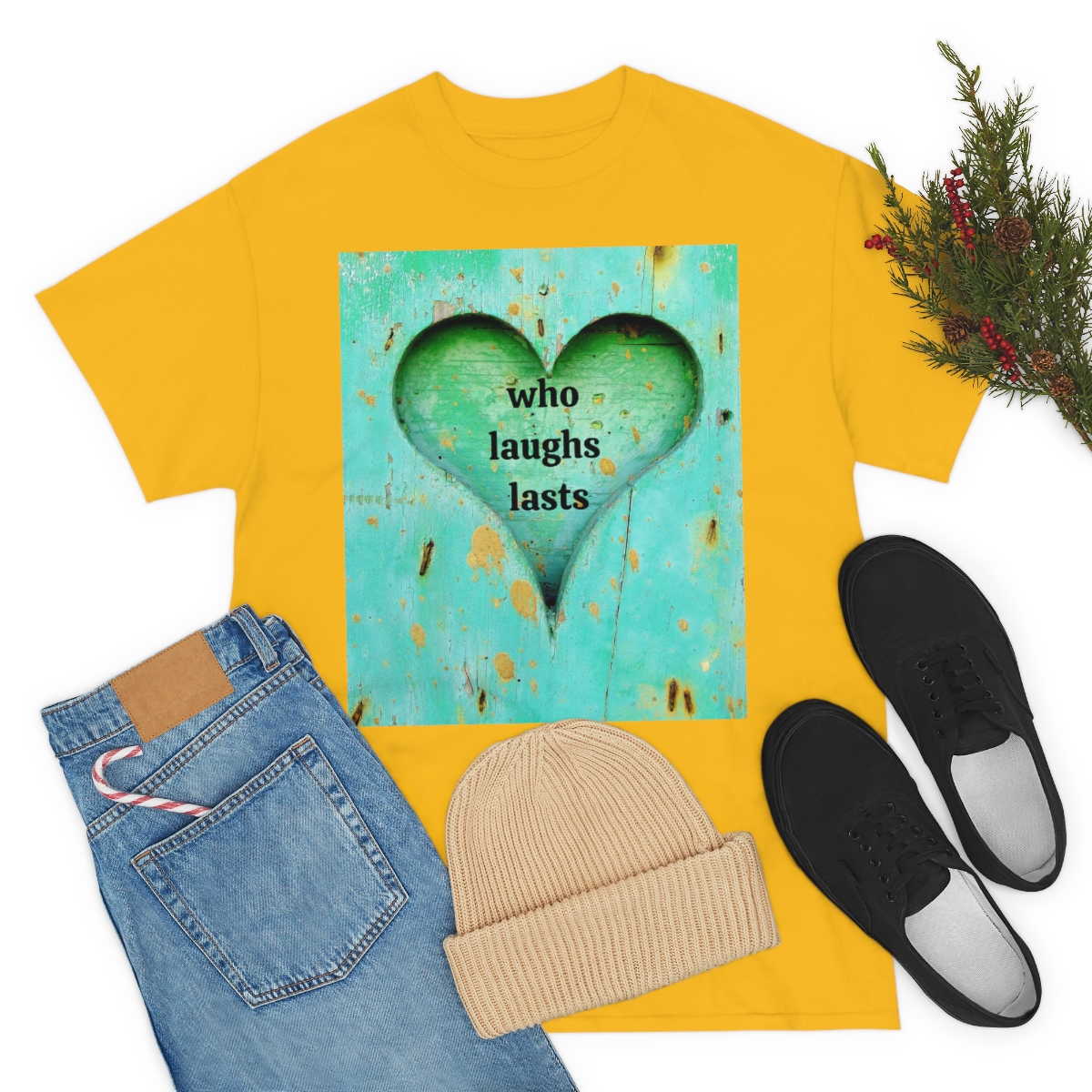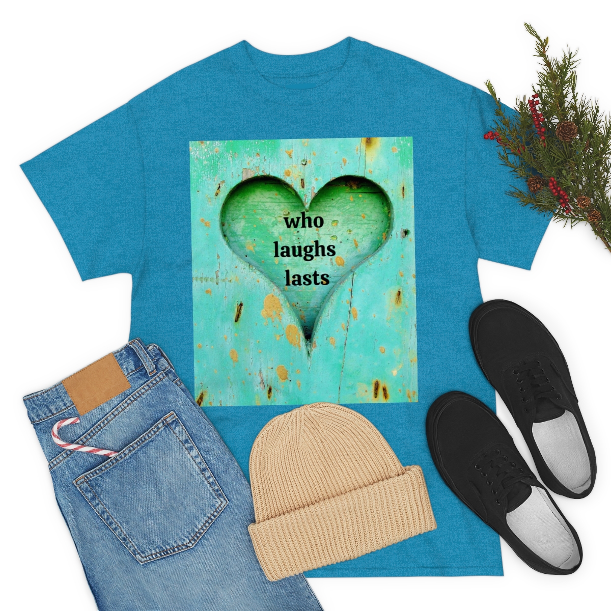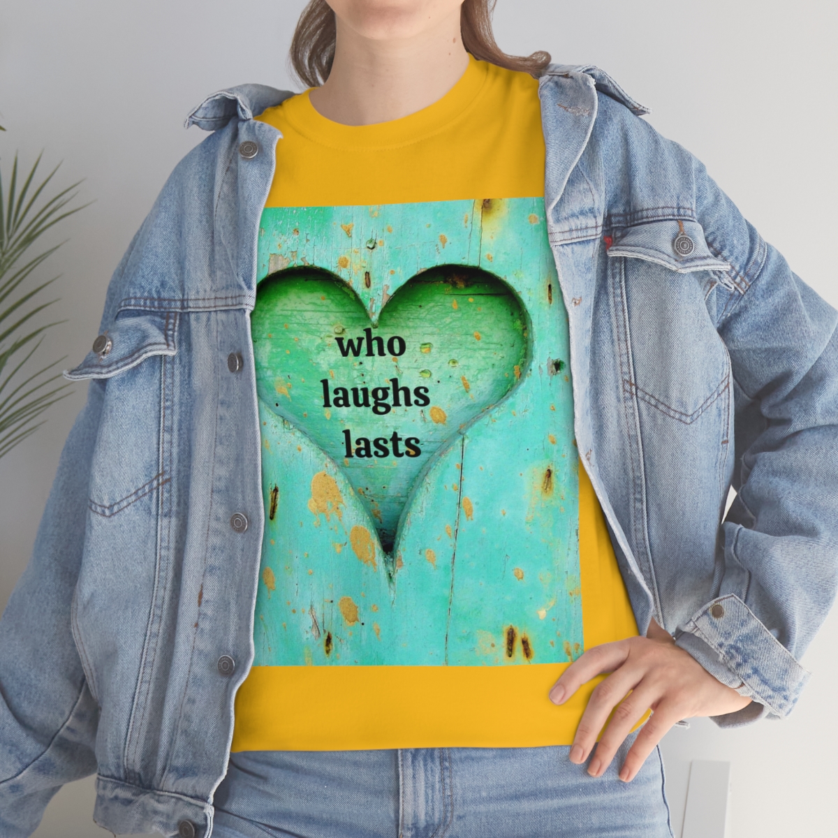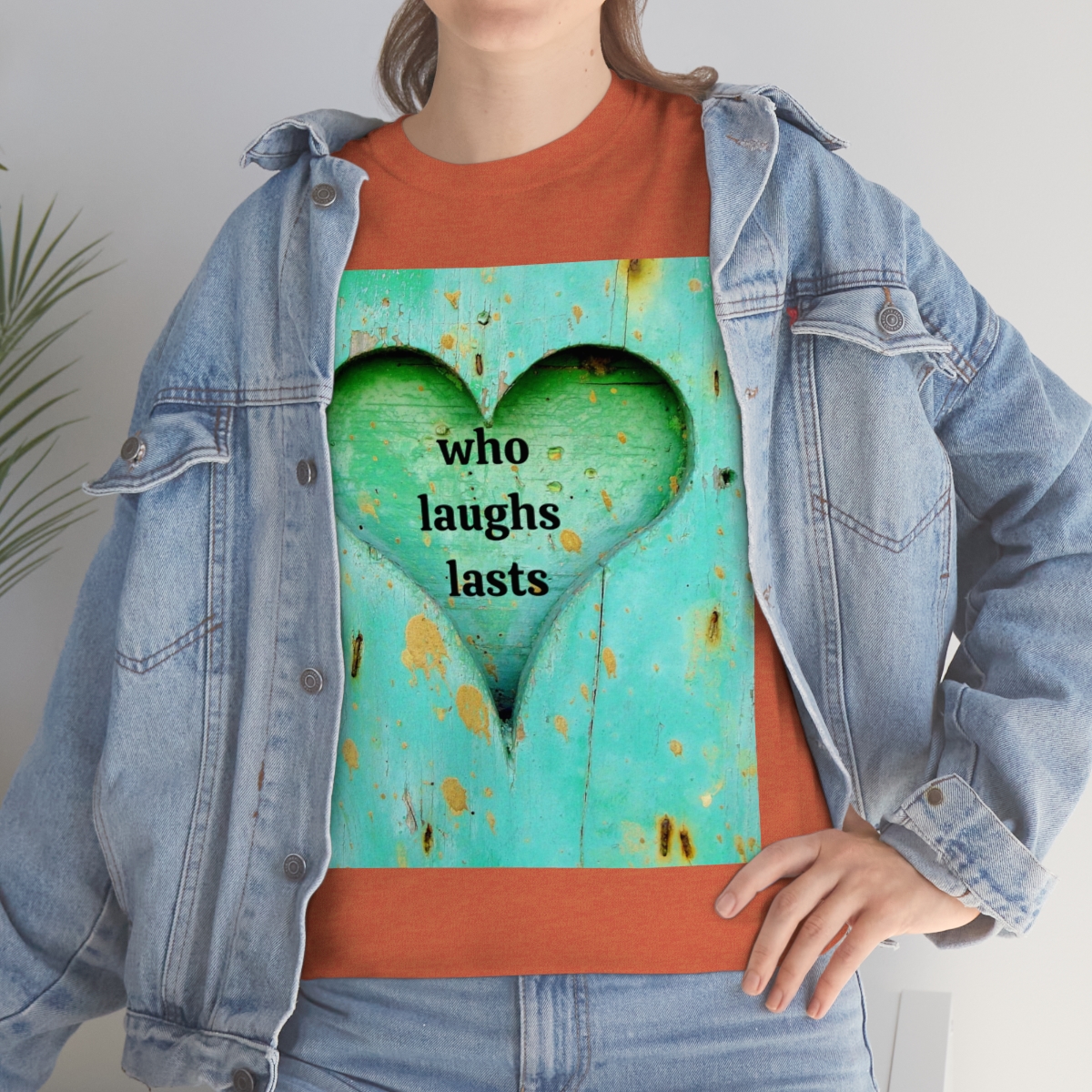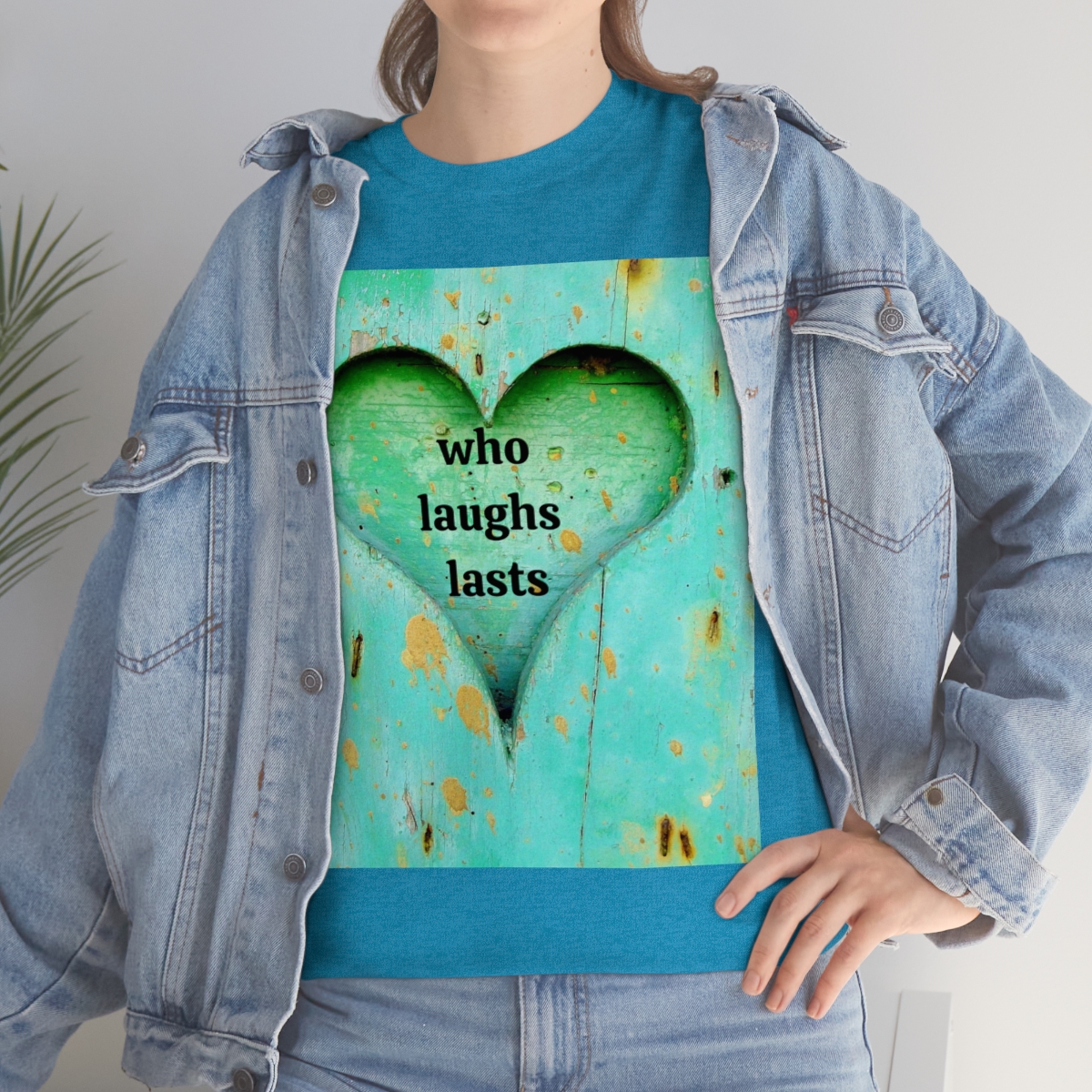 “who laughs lasts” unisex heavy cotton tee is the basic staple of any wardrobe. It is the foundation upon which casual fashion grows. No side seams mean there are no itchy interruptions under the arms. The shoulders have tape for improved durability.