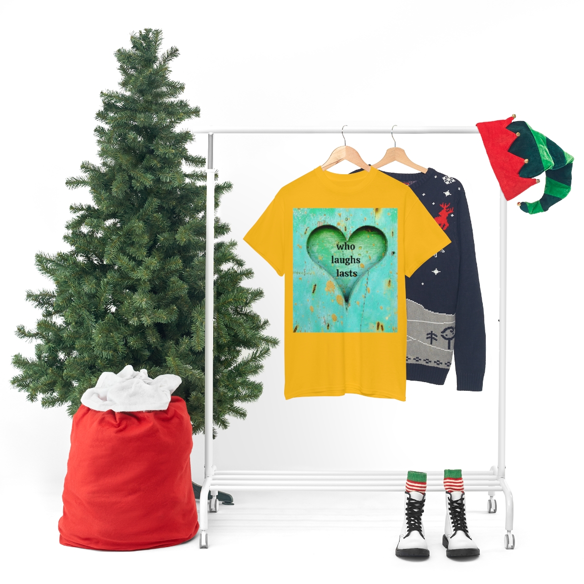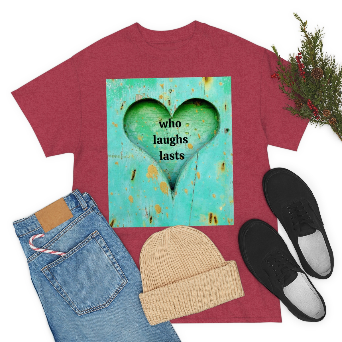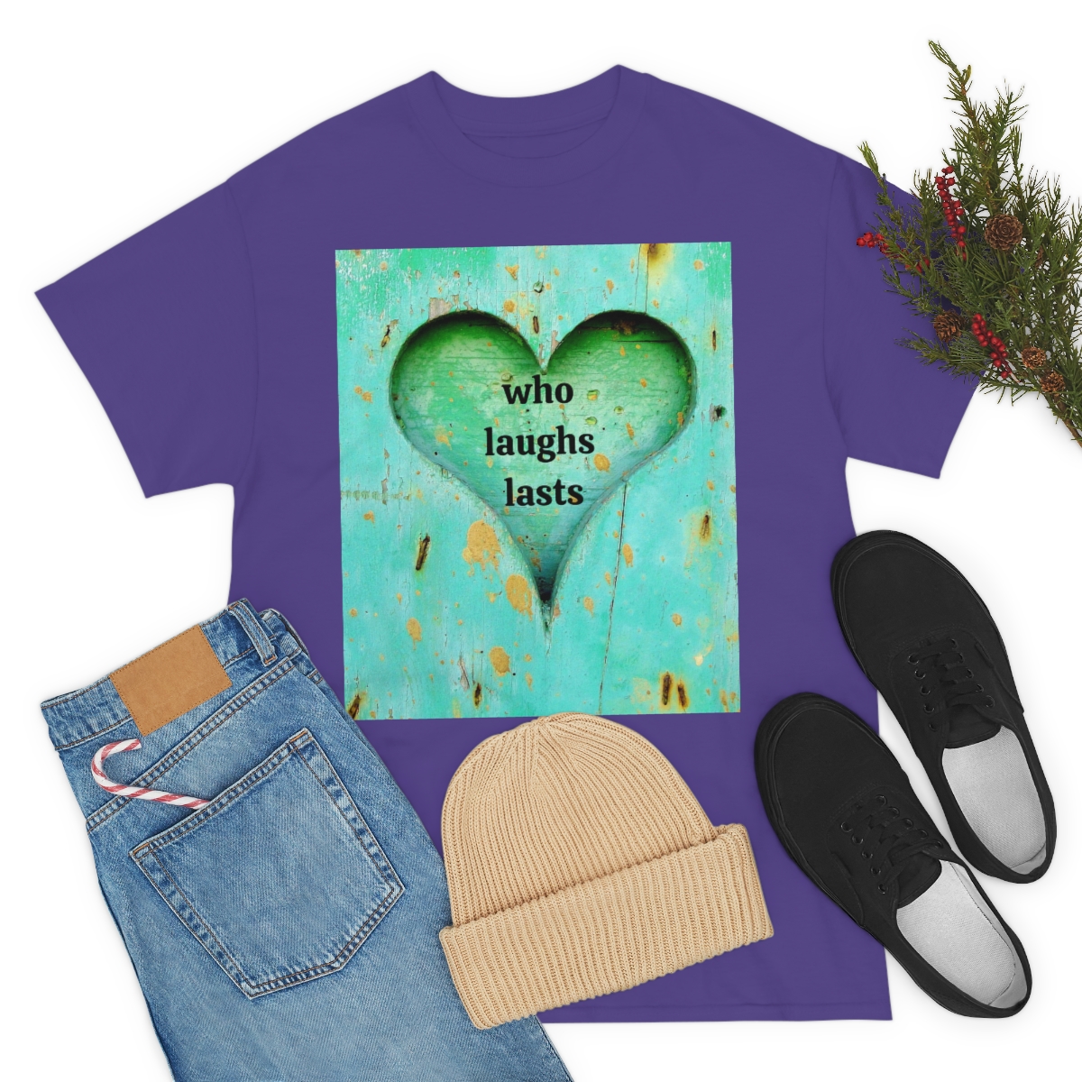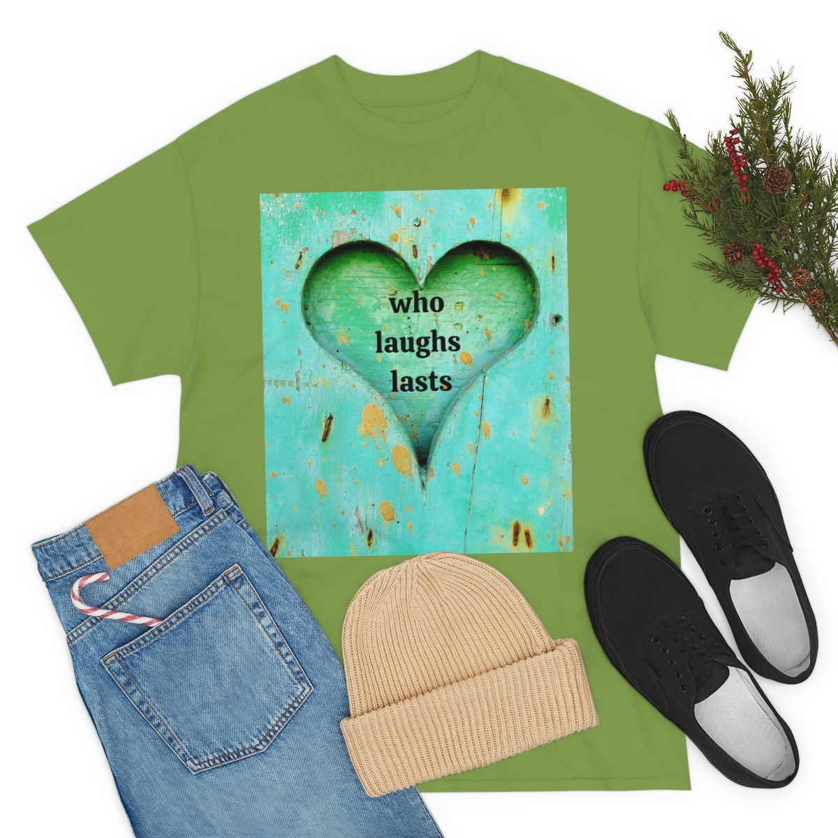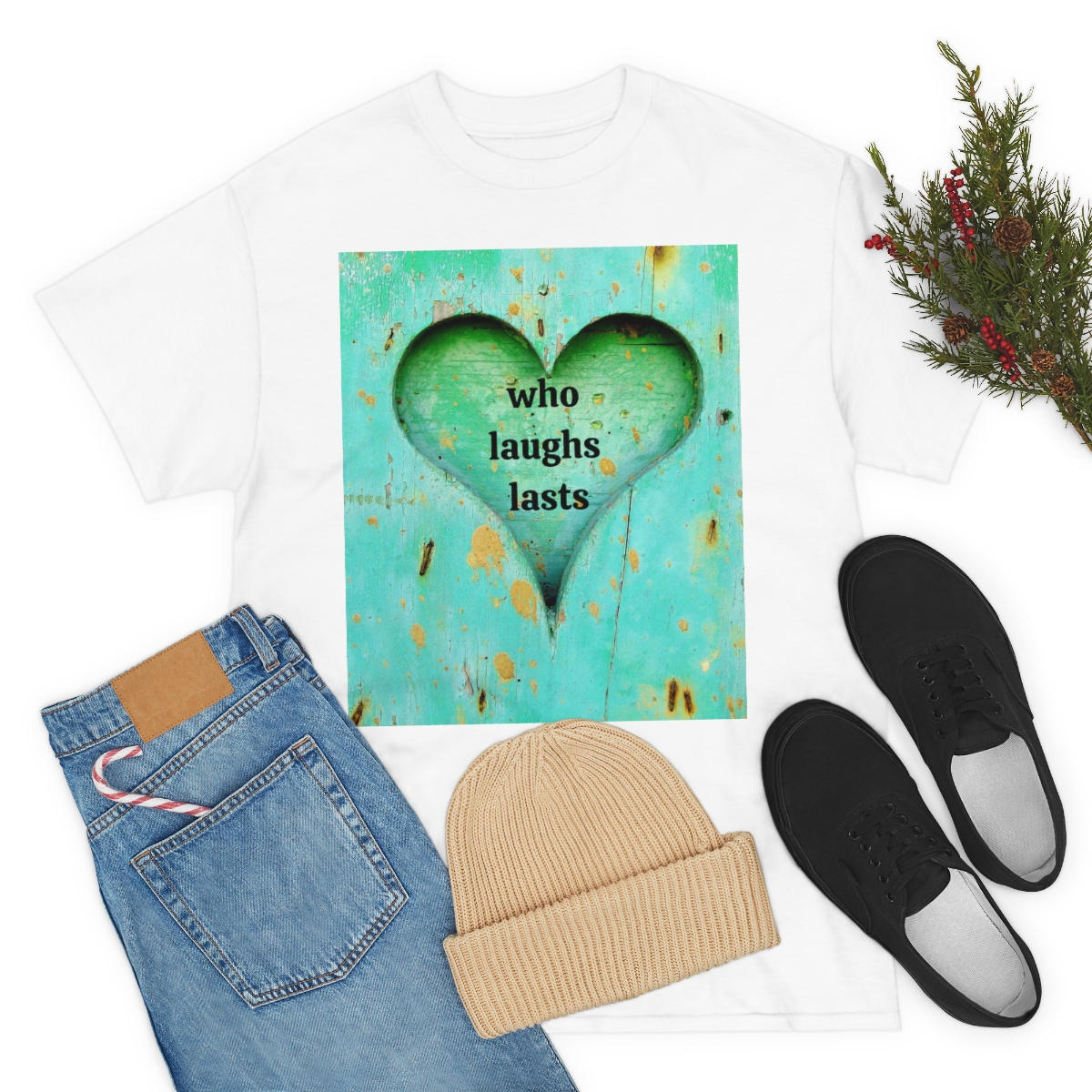 “who laughs lasts” unisex heavy cotton tee is the basic staple of any wardrobe. It is the foundation upon which casual fashion grows. No side seams mean there are no itchy interruptions under the arms. The shoulders have tape for improved durability.
