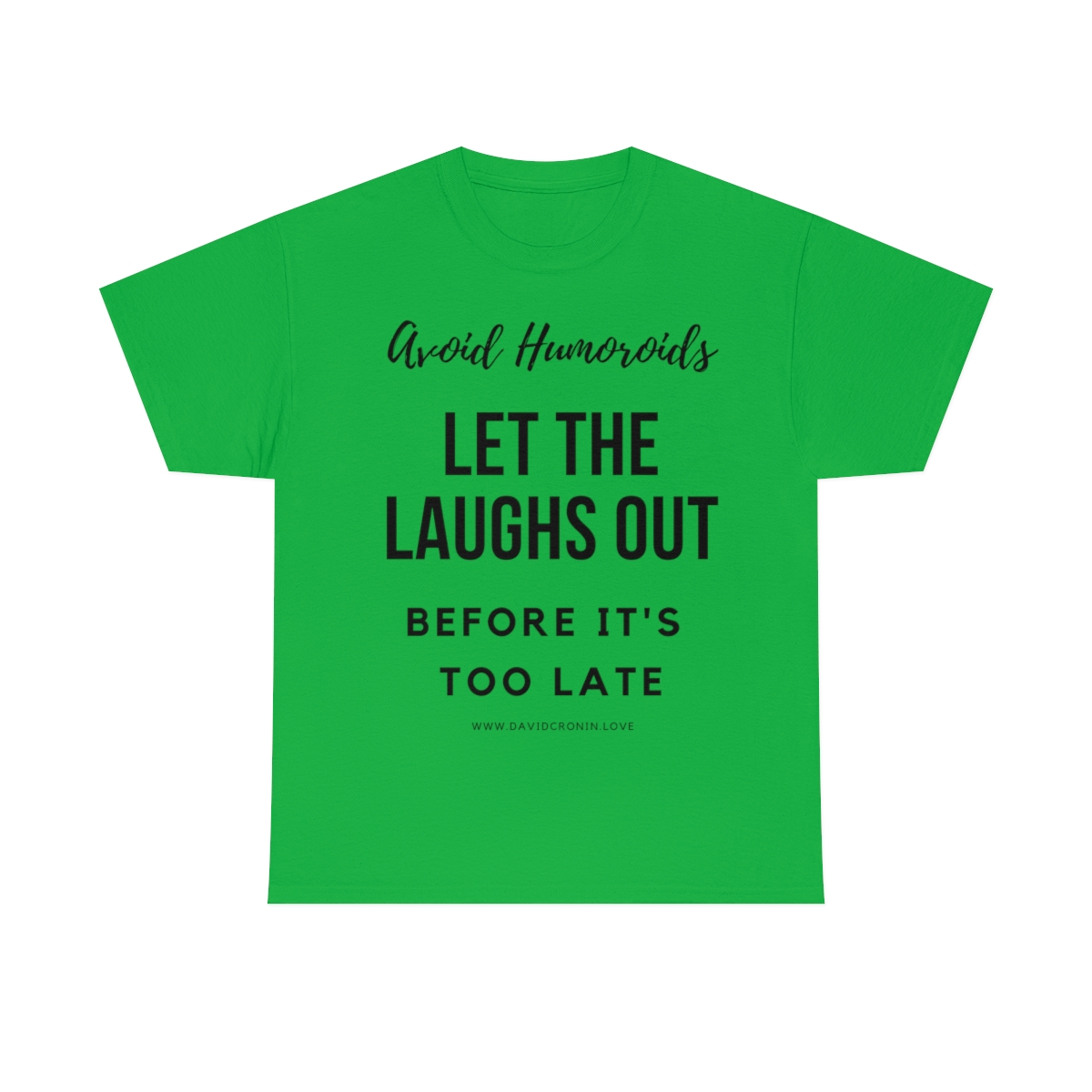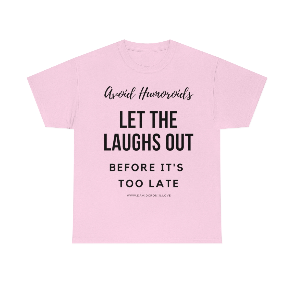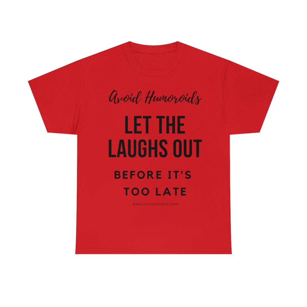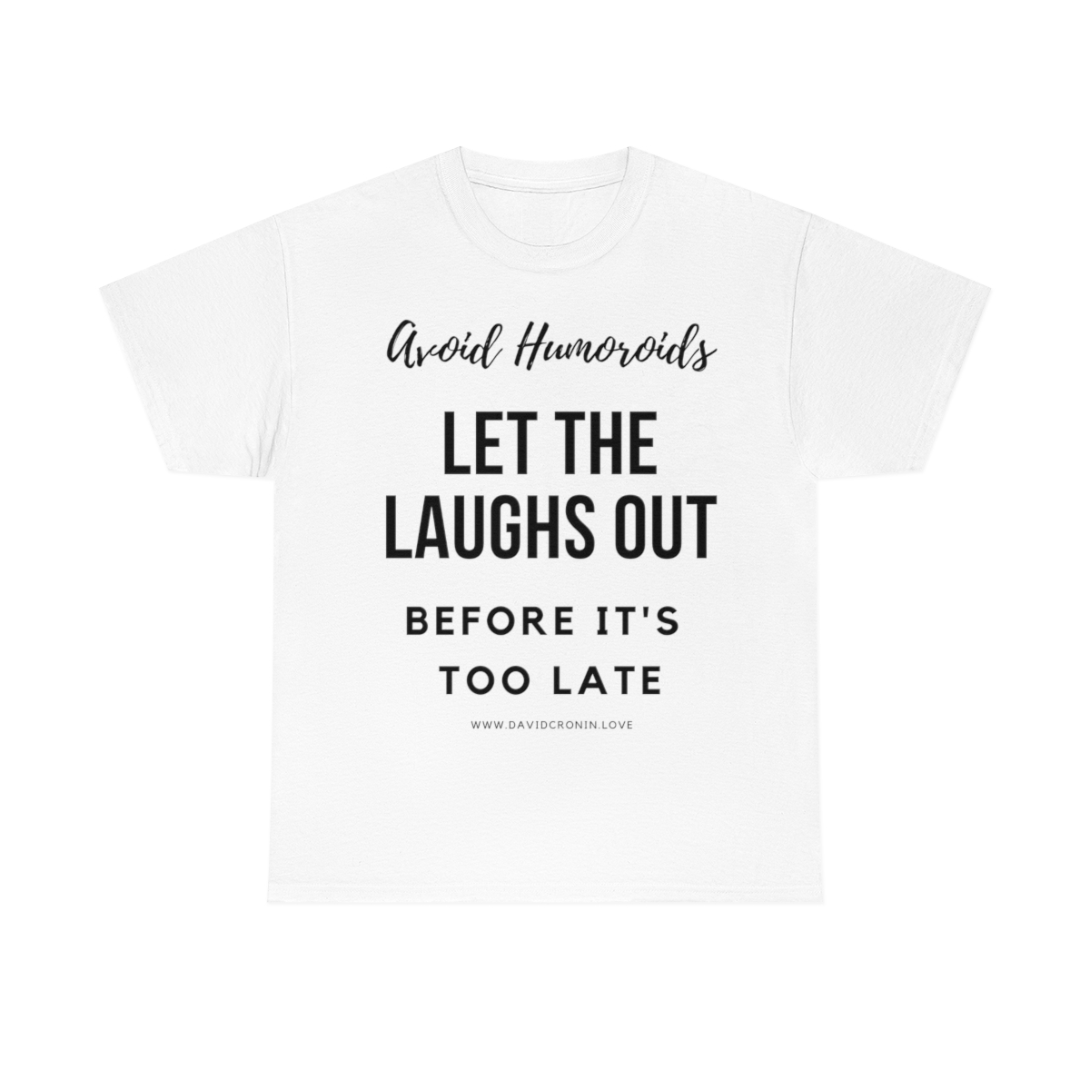“Avoid Humoroids LET THE LAUGHS OUT BEFORE IT’S TOO LATE” The unisex heavy cotton tee is the basic staple of any wardrobe. It is the foundation upon which casual fashion grows. No side seams mean there are no itchy interruptions under the arms. The shoulders have tape for improved durability.