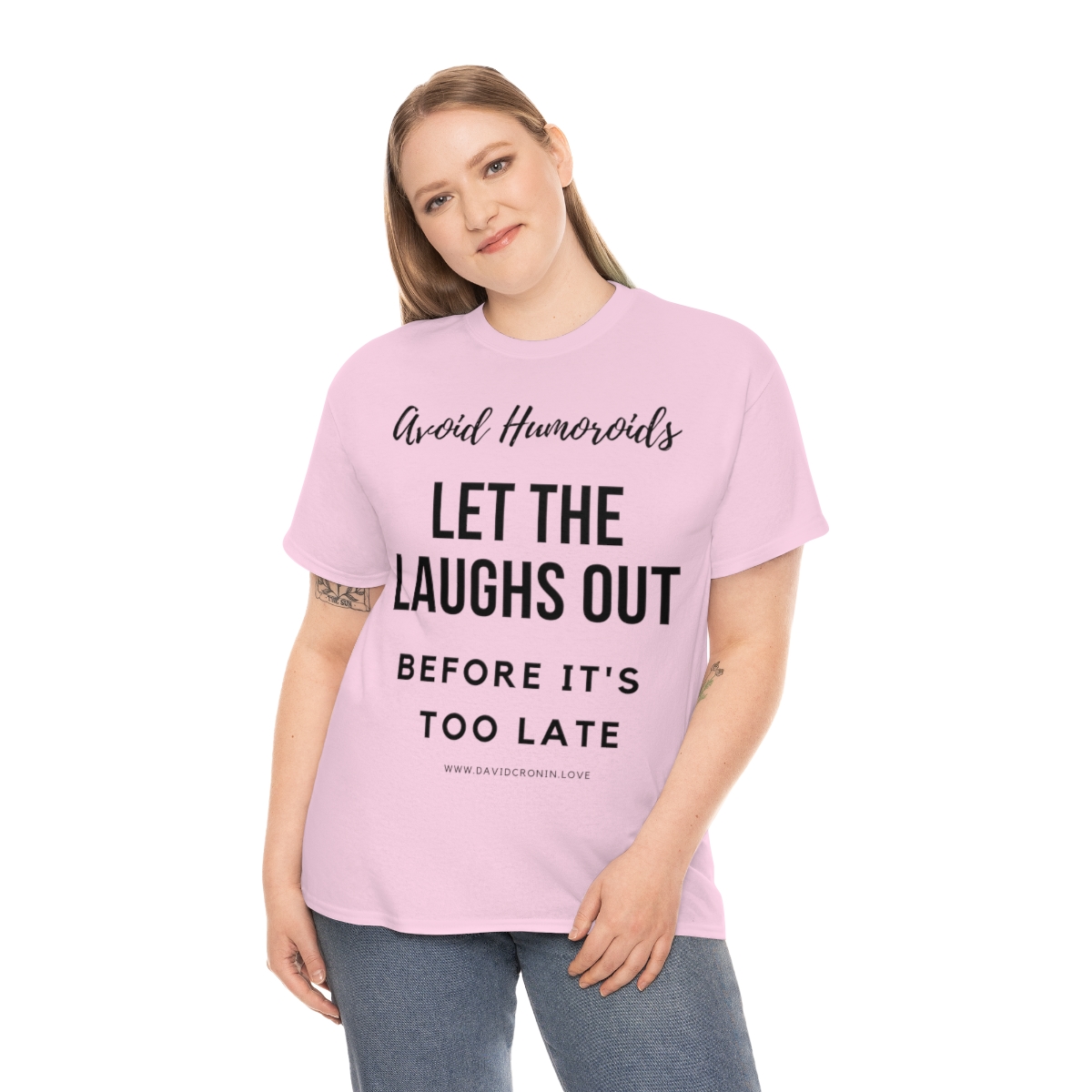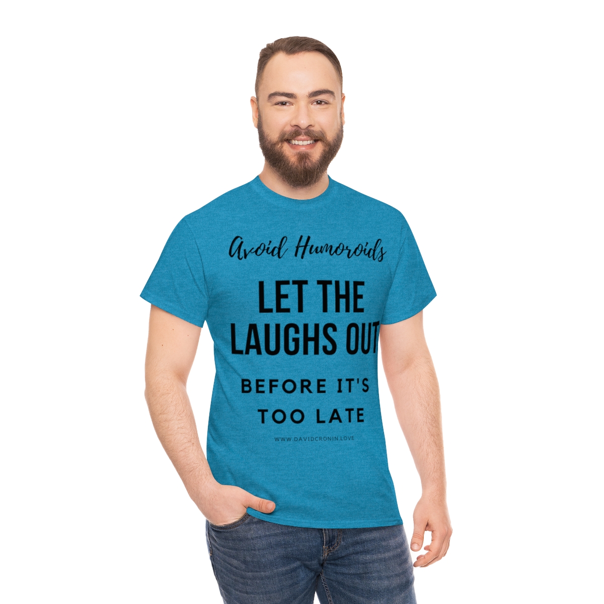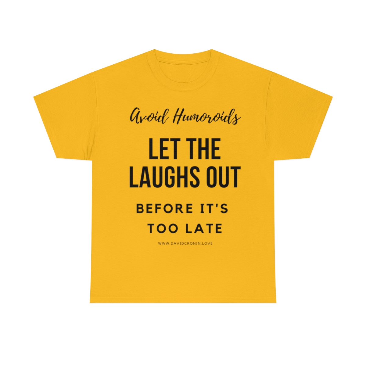 “Avoid Humoroids LET THE LAUGHS OUT BEFORE IT’S TOO LATE” The unisex heavy cotton tee is the basic staple of any wardrobe. It is the foundation upon which casual fashion grows. No side seams mean there are no itchy interruptions under the arms. The shoulders have tape for improved durability.
