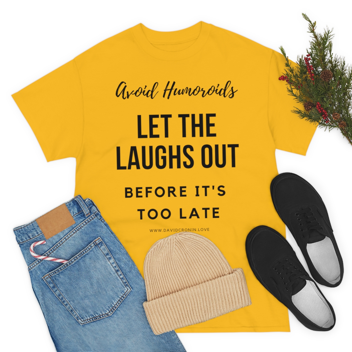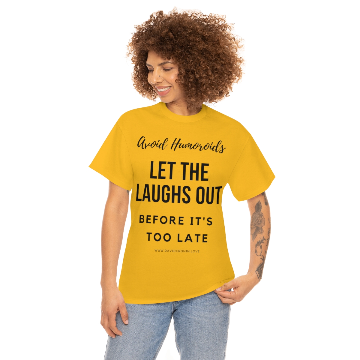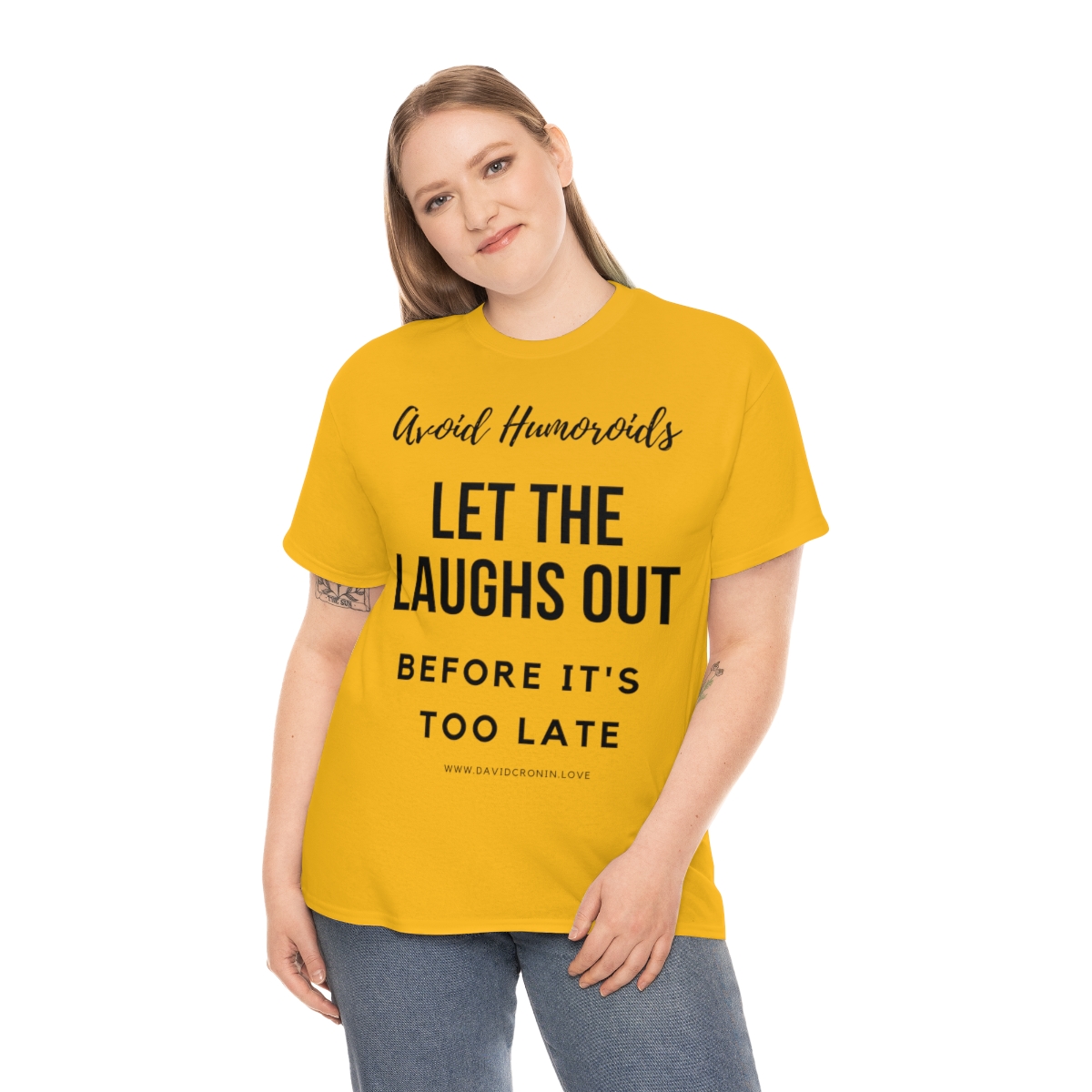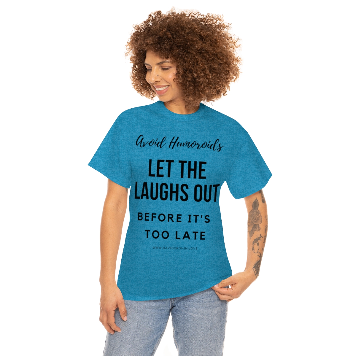 “Avoid Humoroids LET THE LAUGHS OUT BEFORE IT’S TOO LATE” The unisex heavy cotton tee is the basic staple of any wardrobe. It is the foundation upon which casual fashion grows. No side seams mean there are no itchy interruptions under the arms. The shoulders have tape for improved durability.