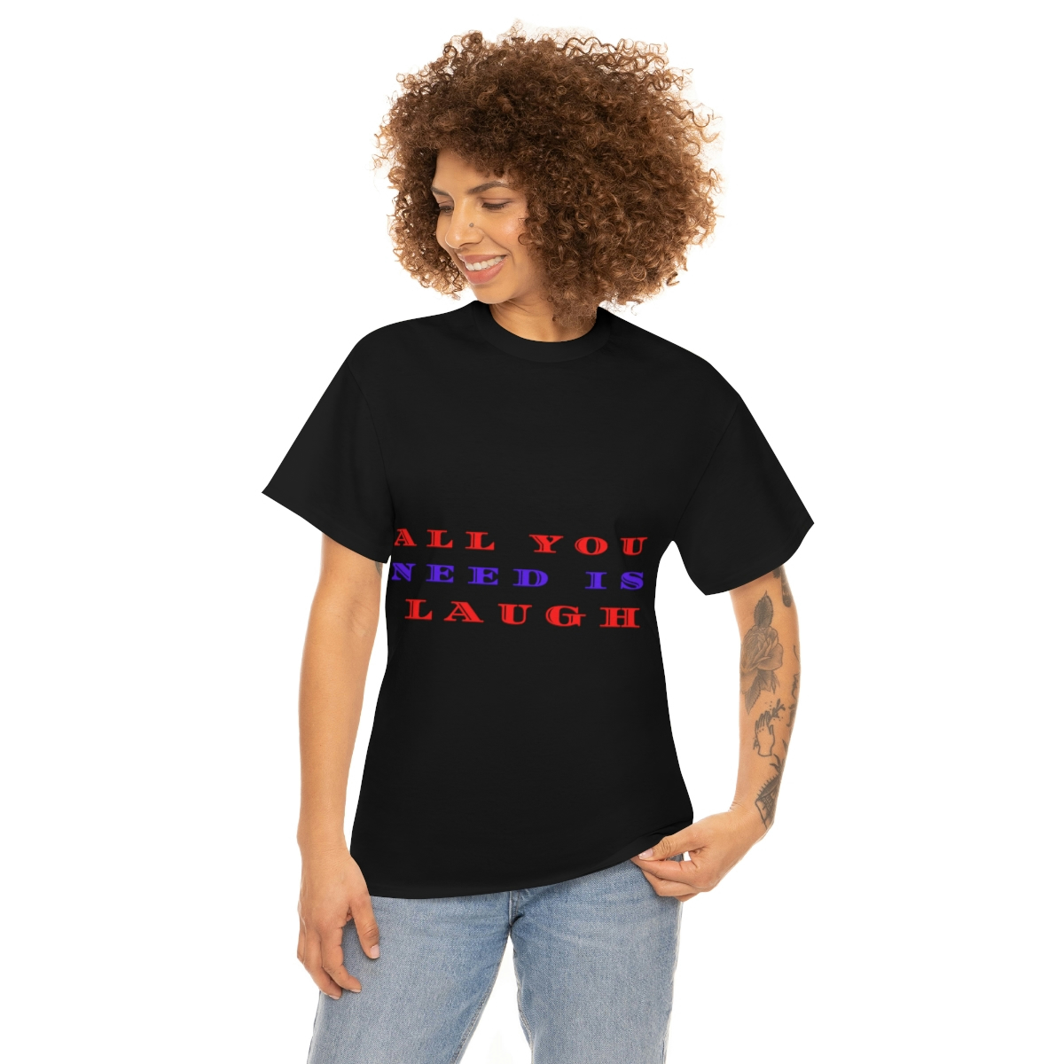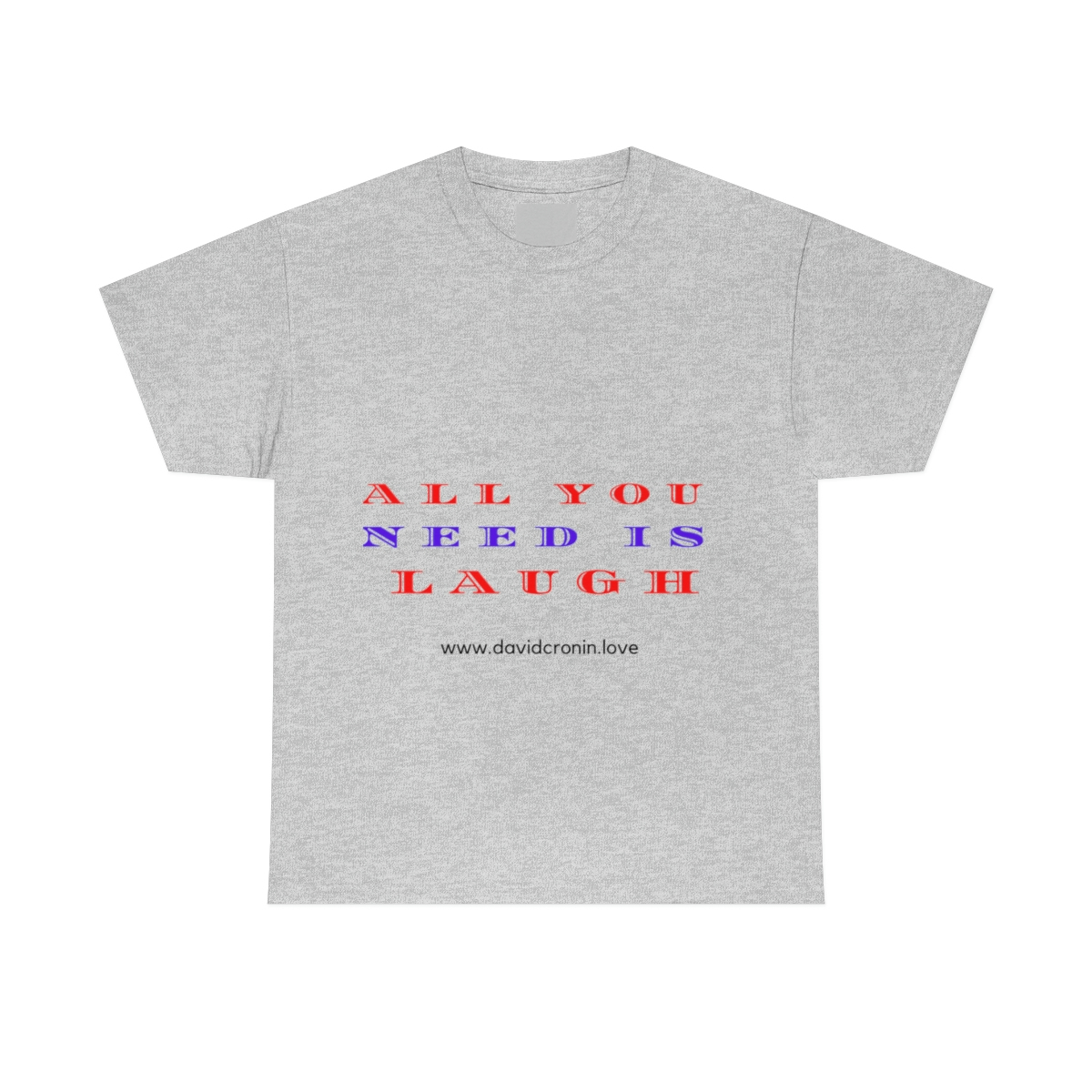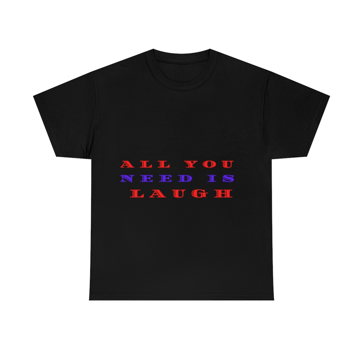 “ALL YOU NEED IS LAUGH” The unisex heavy cotton tee is the basic staple of any wardrobe. It is the foundation upon which casual fashion grows. No side seams mean there are no itchy interruptions under the arms. The shoulders have tape for improved durability.