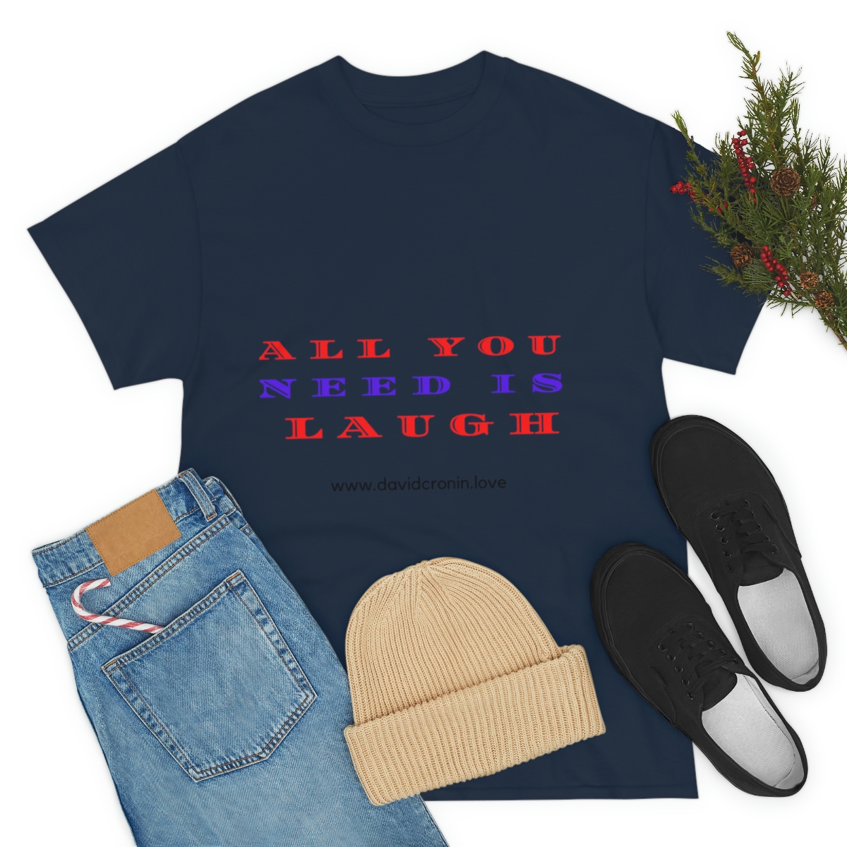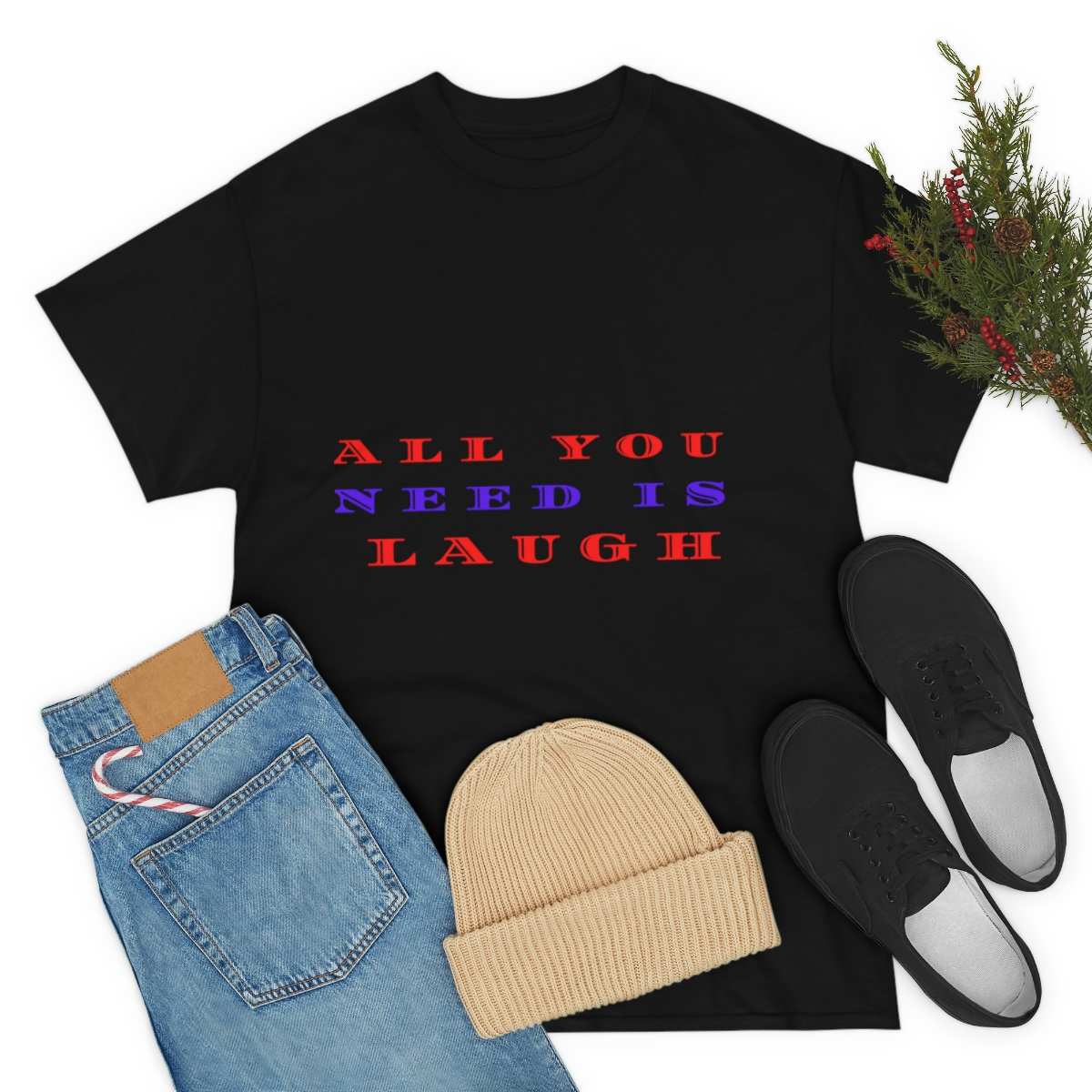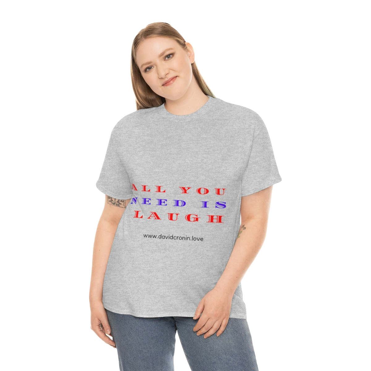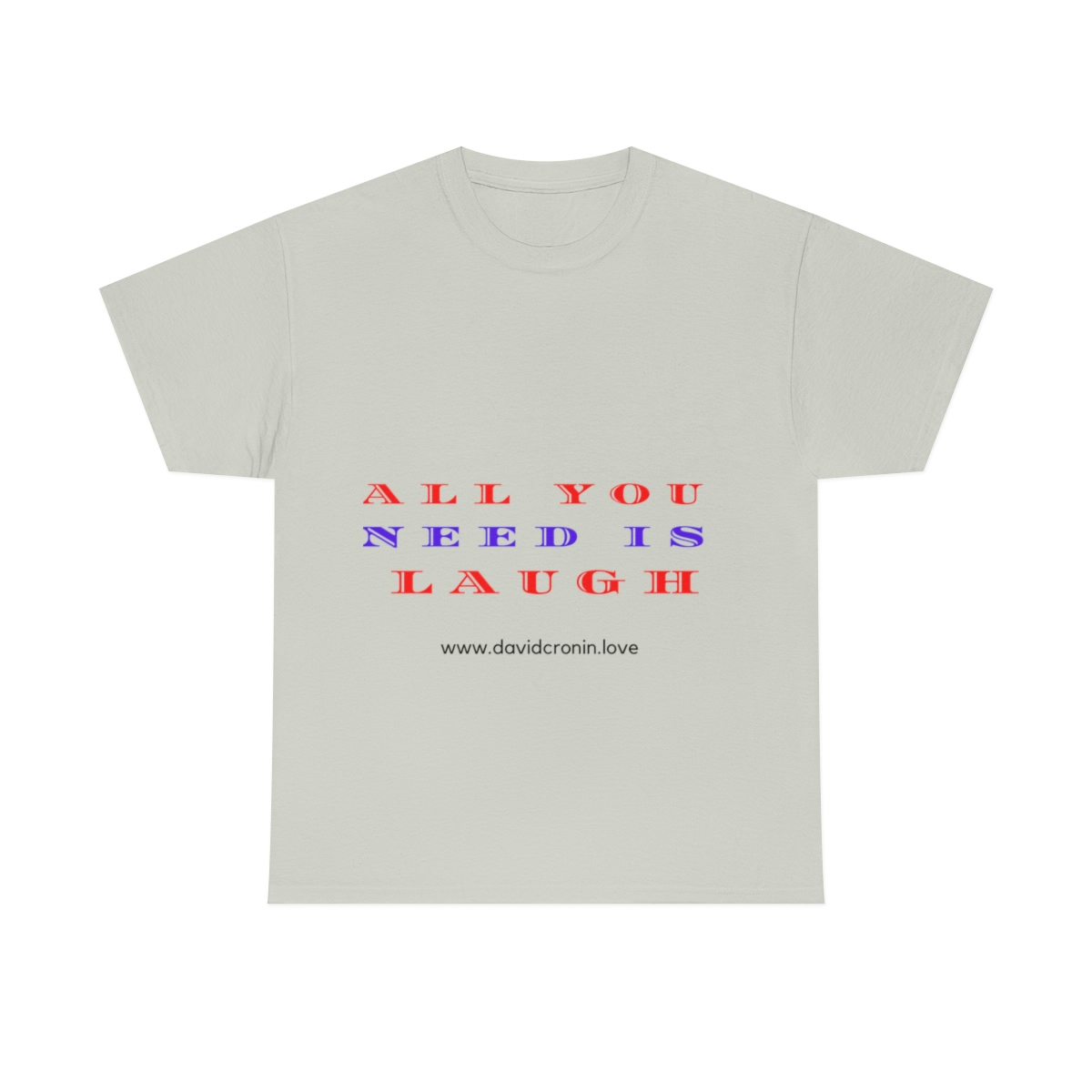 “ALL YOU NEED IS LAUGH” The unisex heavy cotton tee is the basic staple of any wardrobe. It is the foundation upon which casual fashion grows. No side seams mean there are no itchy interruptions under the arms. The shoulders have tape for improved durability.